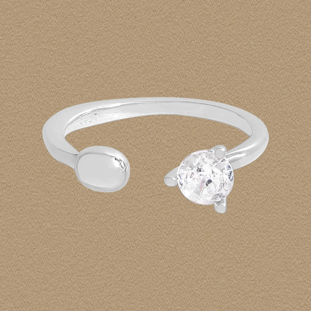 - Color: The band shines in brilliant silver, complementing a single, dazzling clear cubic zirconia stone at its heart.