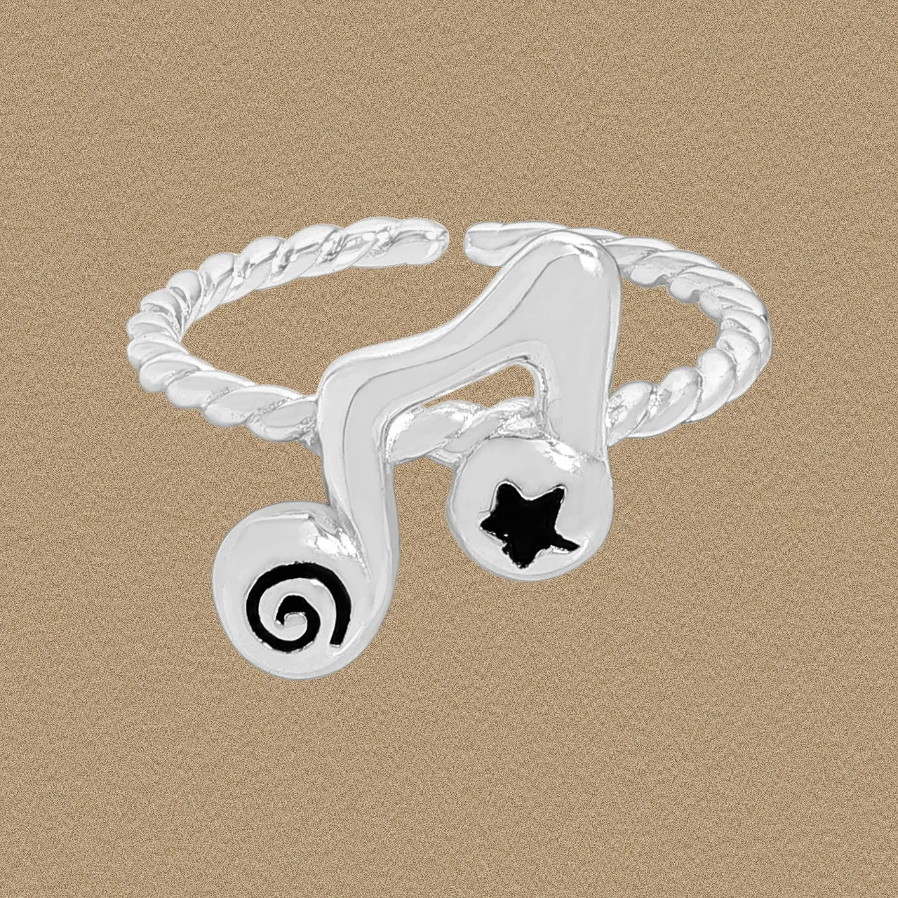 - Style: Featuring an open-ended design for comfortable wear, this adjustable ring showcases two stylized musical notes. Its delightful and artistic flair makes it a perfect accessory for those who appreciate creative expression.