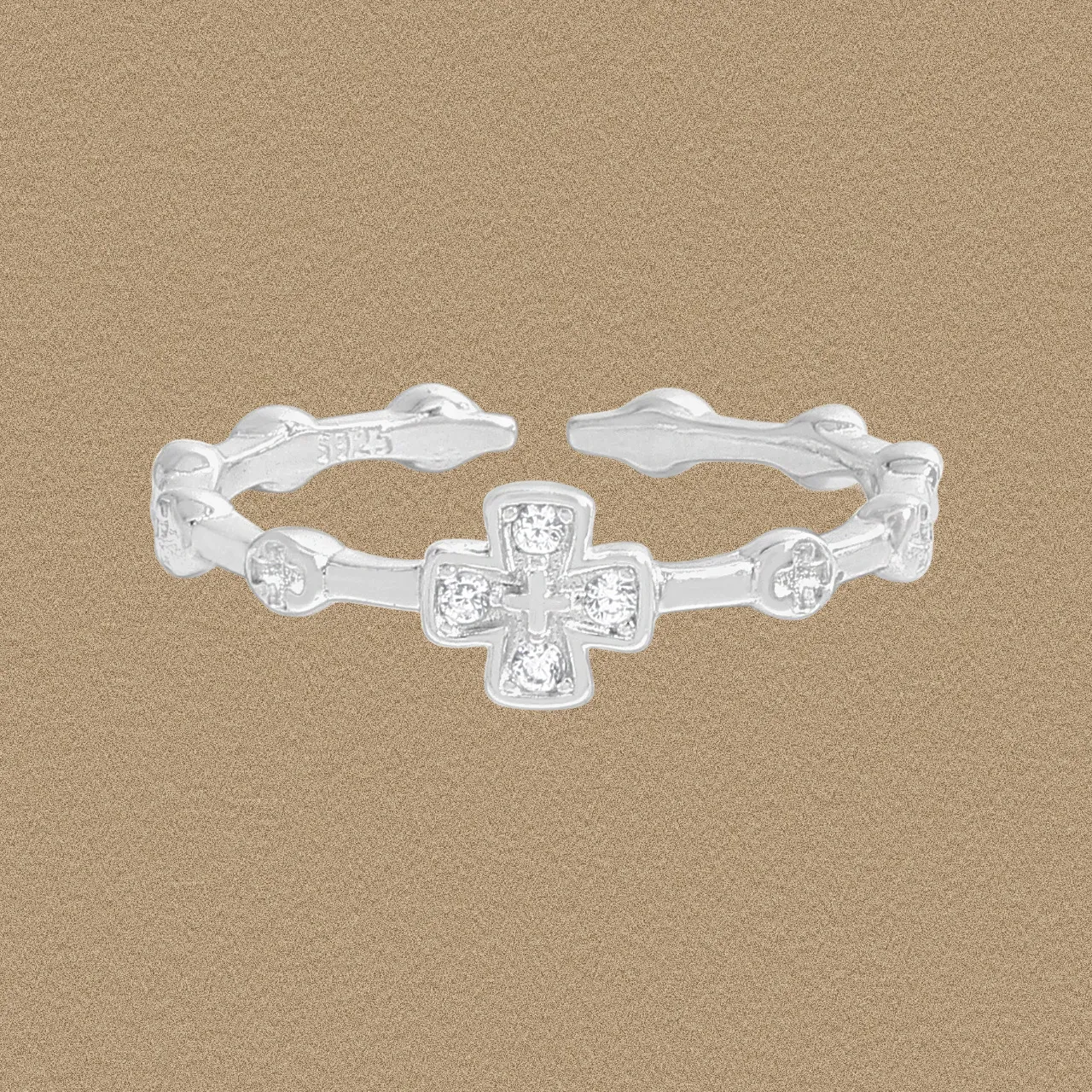 Celestial Cross Adjustable Silver Ring