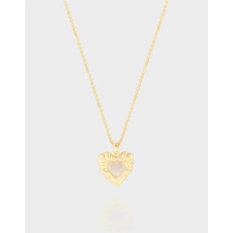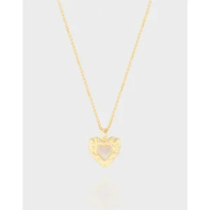 - Color: The delicate chain and the outer heart pendant gleam in a radiant gold finish, perfectly complementing the soft, iridescent pearlescent white inlay at its core.