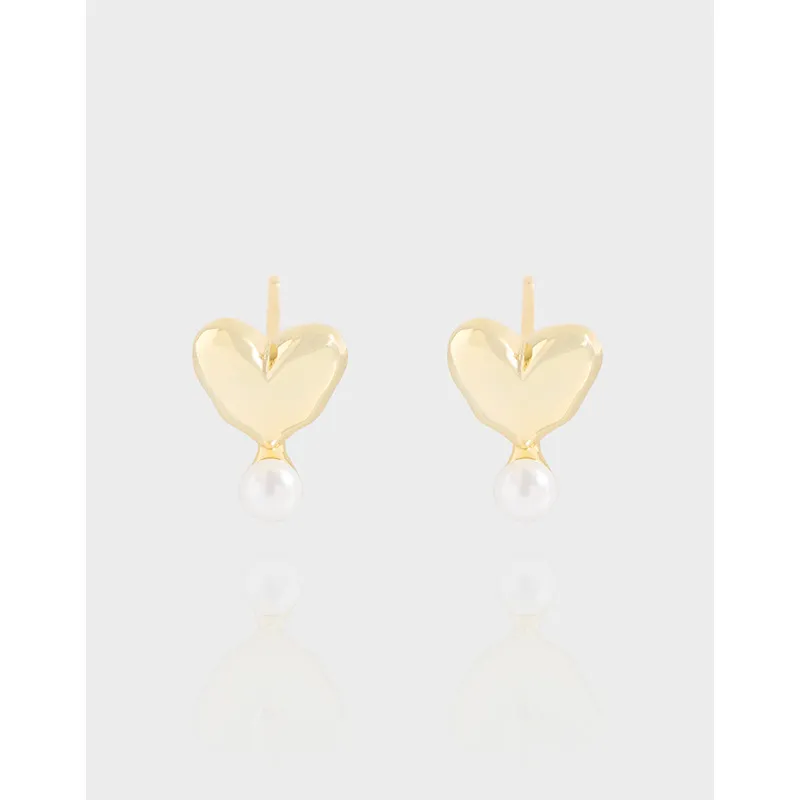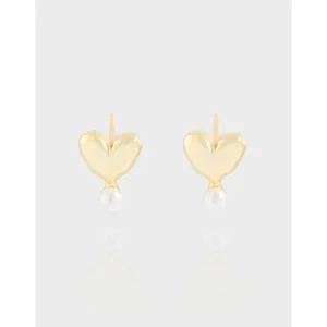 Embrace ethereal charm with Malisse Aurora Heart & Pearl Drop Earrings. These exquisite pieces feature radiant gold hearts, each designed with a unique, organically fluid and slightly textured surface. Daintily suspended beneath each heart is a lustrous white pearl, creating a harmonious blend of modern artistry and classic elegance.