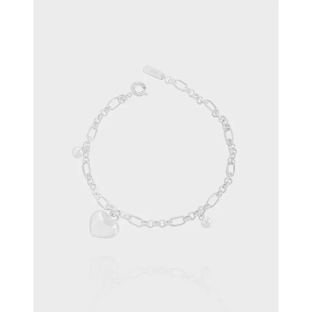 Designed with fluid elegance, this charm bracelet features a delicate chain adorned with three enchanting charms. A prominent, sculpted heart charm symbolizes love and timeless beauty, while two smaller, spherical charms add a touch of subtle charm, reminiscent of nature’s perfect spheres. Its versatile style captures Malisse’s essence of organic flow and understated sophistication.