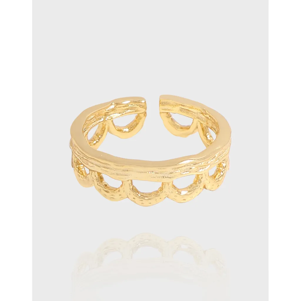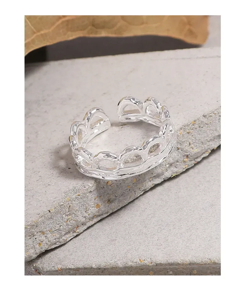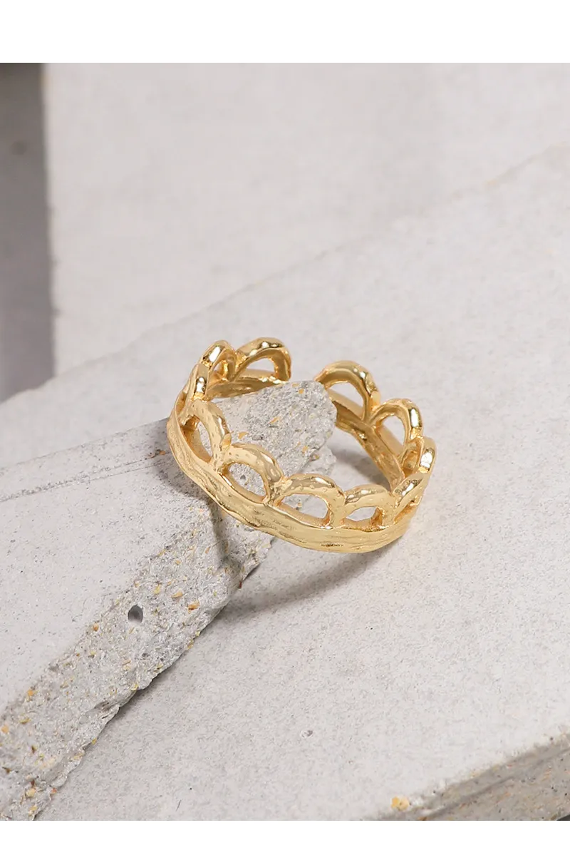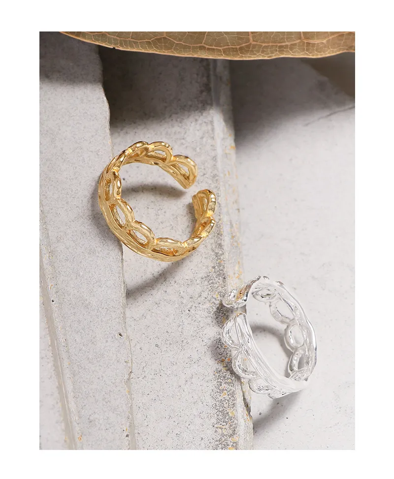 Embrace the allure of natural forms with this exquisite open ring, a testament to organic beauty and timeless design, reflecting the fluid artistry of the cosmos.