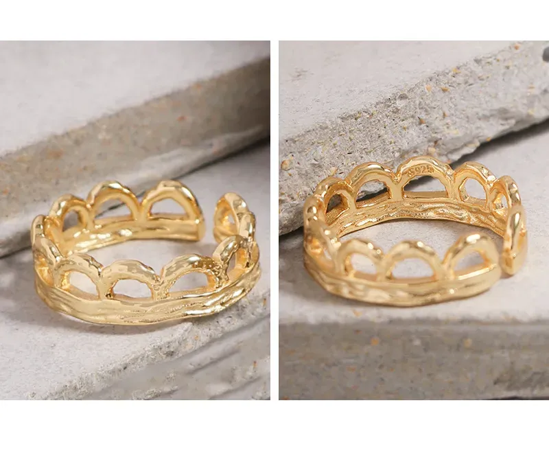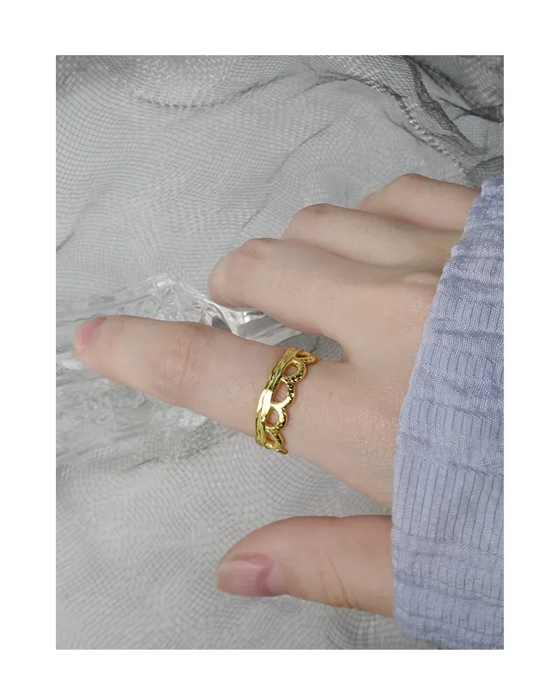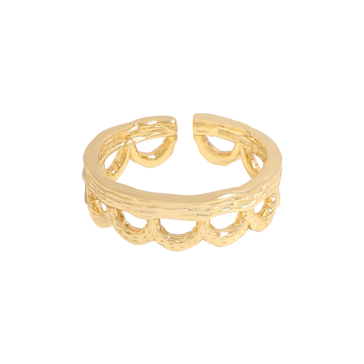 • Color: Gleaming in a rich, warm golden hue, this Alessia Ring radiates an ethereal glow, reminiscent of sunlight dancing on natural surfaces.