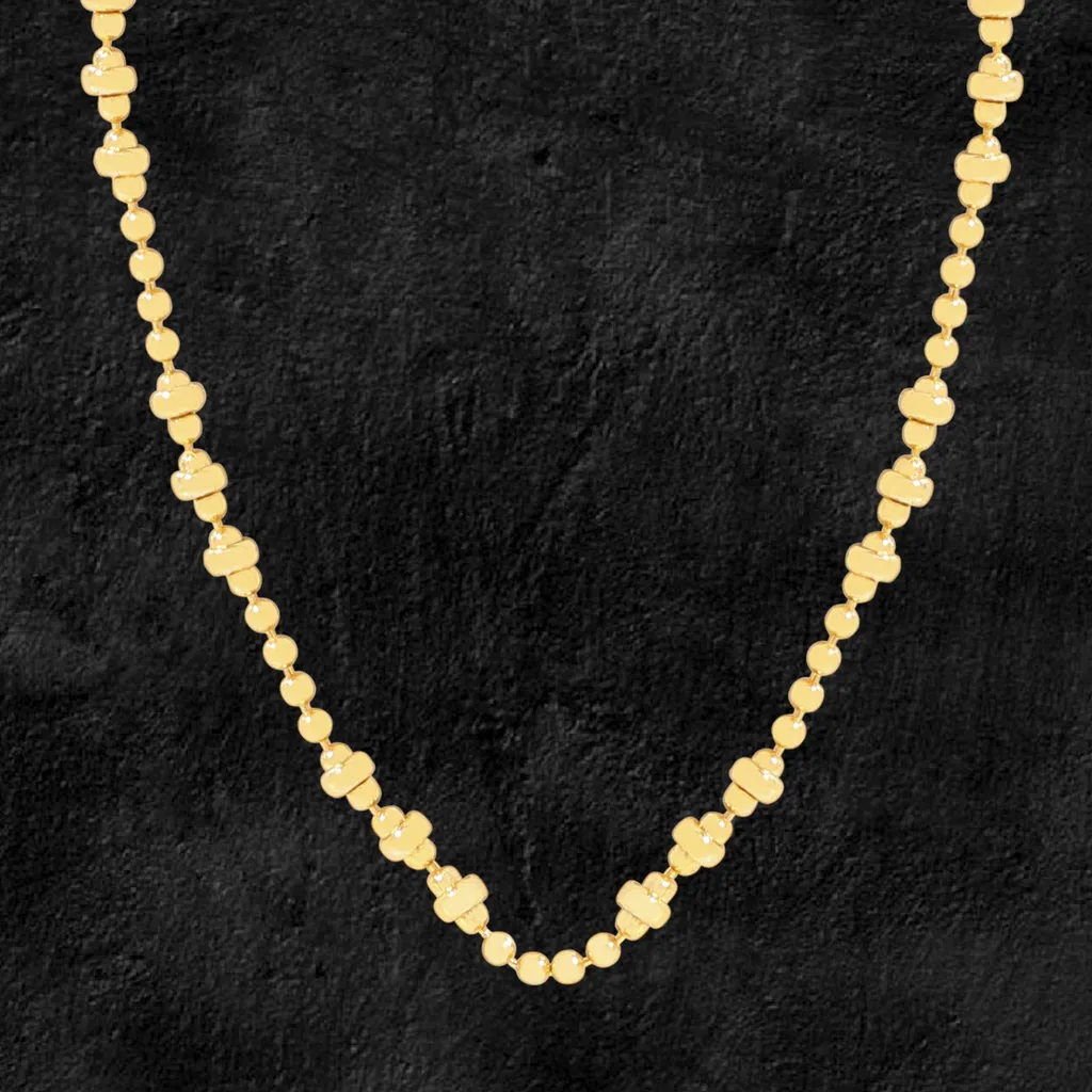 - Patterns & Textures: The necklace showcases an enchanting alternating pattern of small, smooth spherical beads and distinct, flat clover-like or four-petal motifs. Each clover-like element possesses a subtly layered design, creating a gentle three-dimensional effect, while the polished surfaces throughout ensure a lustrous reflection, akin to light dancing on water.
