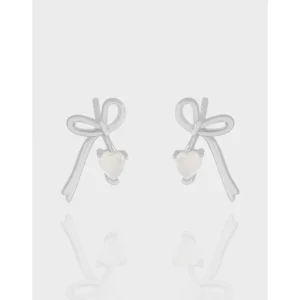 • Style: A whimsical and feminine design, each earring showcases a gracefully tied bow from which a radiant heart dangles, embodying playful sophistication and timeless romance.