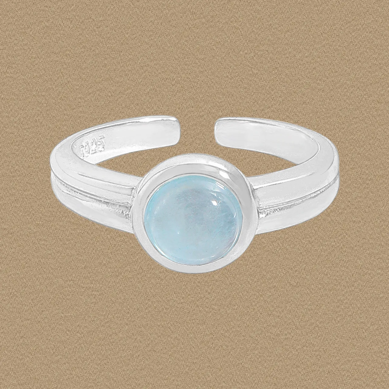 - Patterns & Textures: The silver band boasts a radiant, polished finish, providing a smooth canvas. It is subtly adorned with delicate parallel grooved lines that run along the sides, adding a sophisticated linear texture. An engraved “S925” mark inside the band confirms its sterling silver quality, while the gemstone itself presents a soft, cloudy translucence, reflecting the organic and raw textures found in nature’s most enchanting elements.