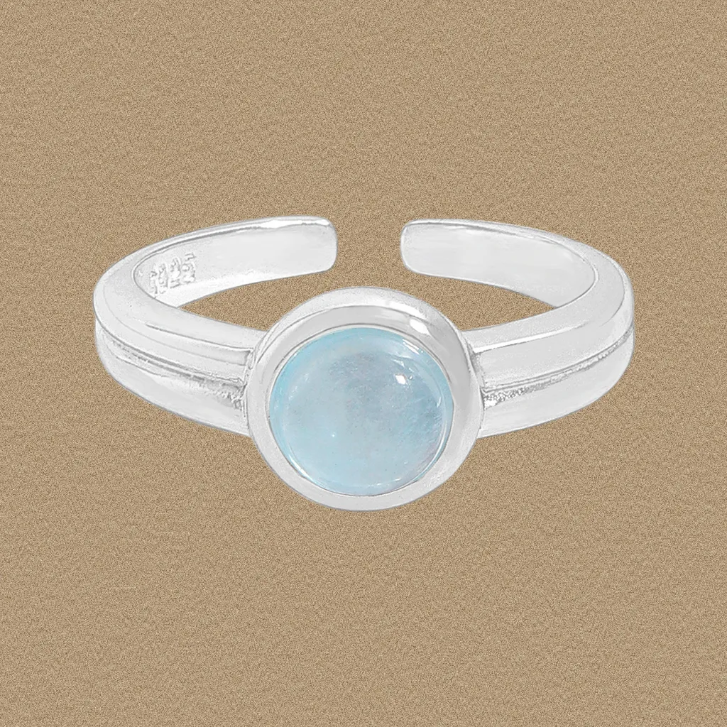 - Color: Crafted from lustrous sterling silver, the Amani Ring features a captivating, translucent sky blue gemstone. Its soft, celestial hue evokes the tranquil depths of the ocean and the expansive beauty of a clear daylight sky.