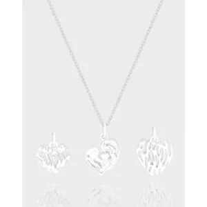 - The central pendant showcases a beautifully sculpted, fluid heart, with a smooth, wave-like texture that evokes the organic flow of nature. Its design subtly suggests an embrace, capturing a tender moment.