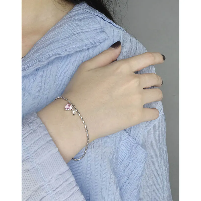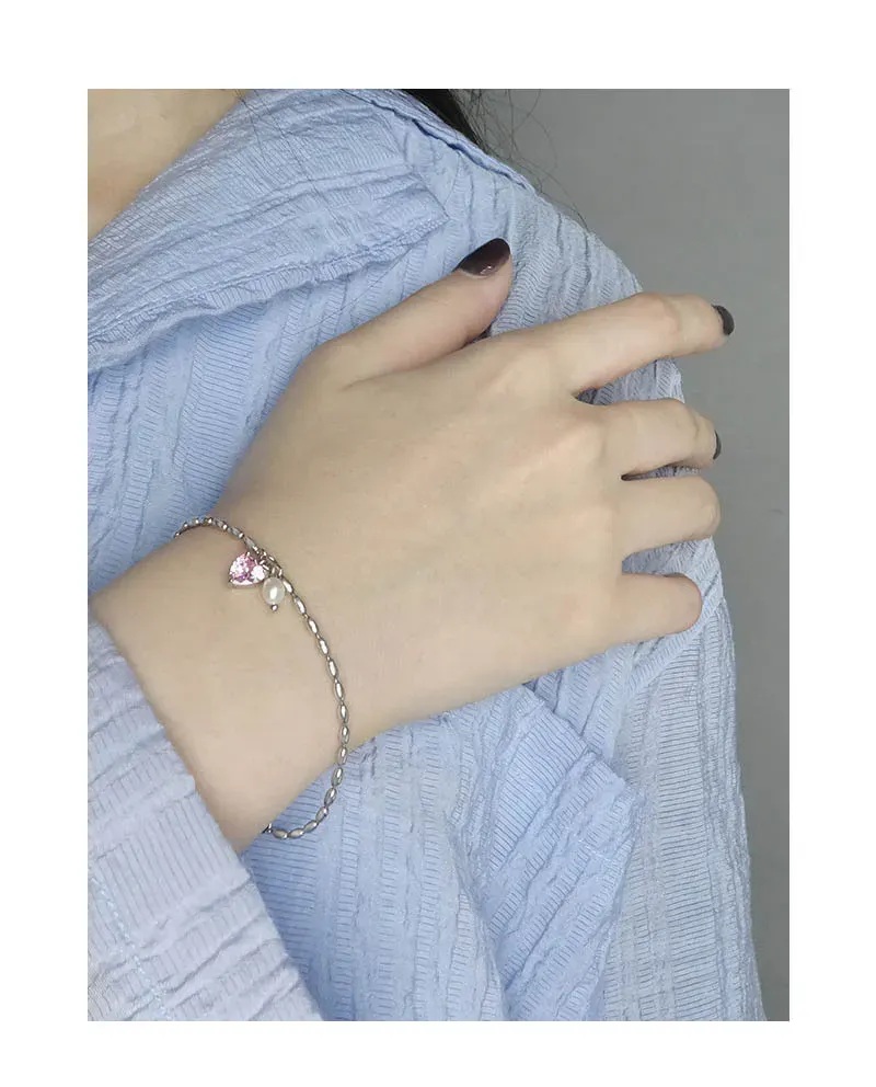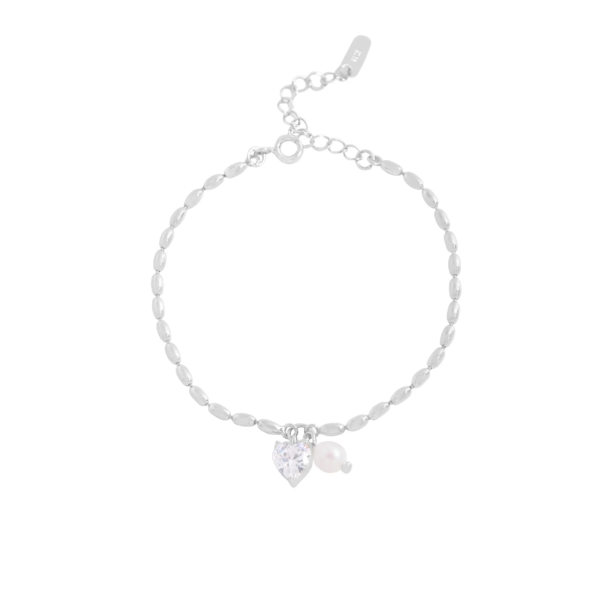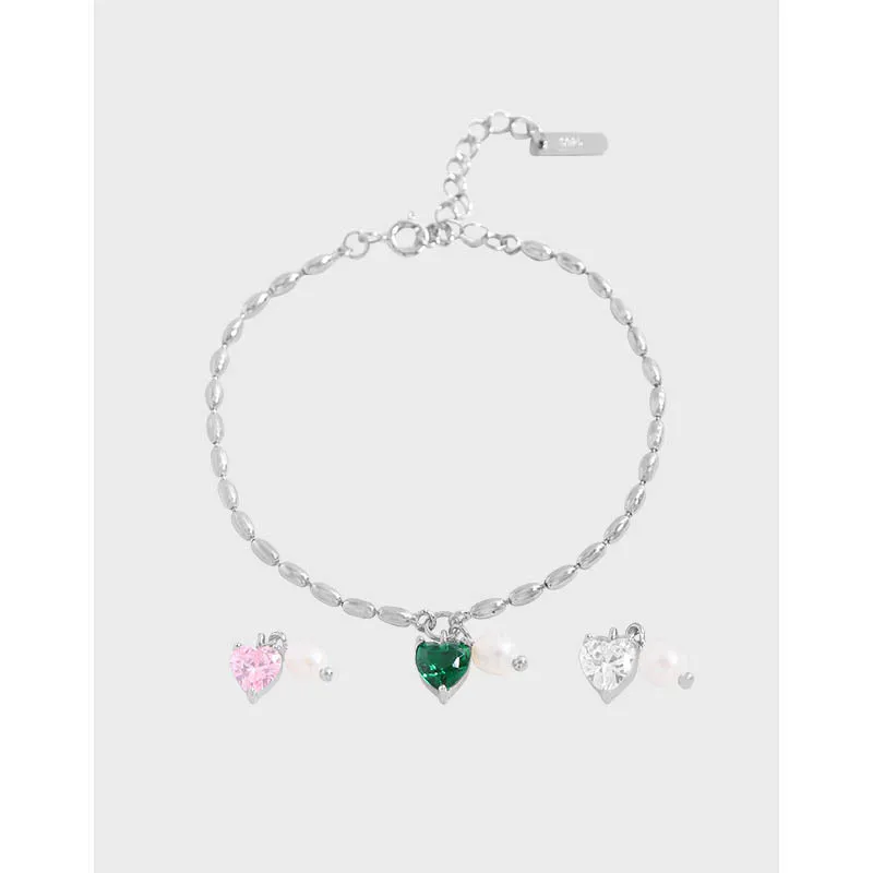 Enchanting Heart & Pearl Silver Bracelet