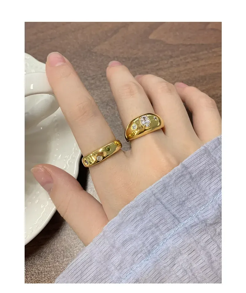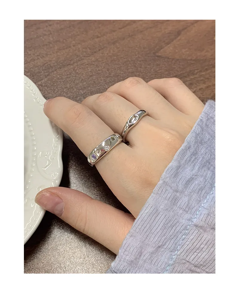 - Patterns & Textures: The band exhibits a highly polished, smooth, and reflective surface, capturing and playing with light like a celestial shimmer. The embedded gemstones present a smooth, understated texture, set seamlessly to maintain the ring’s refined and organic flow.