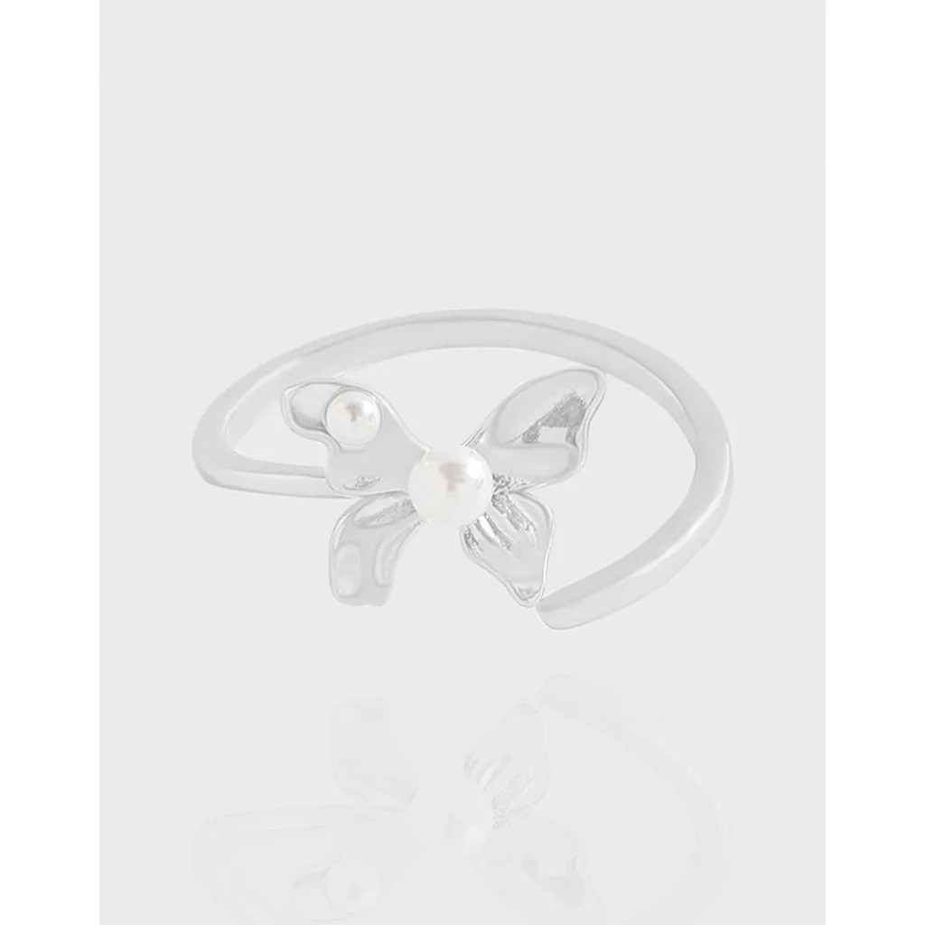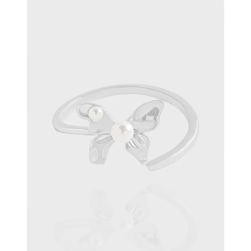 Malisse Silver Butterfly Ring with Luminous Pearls