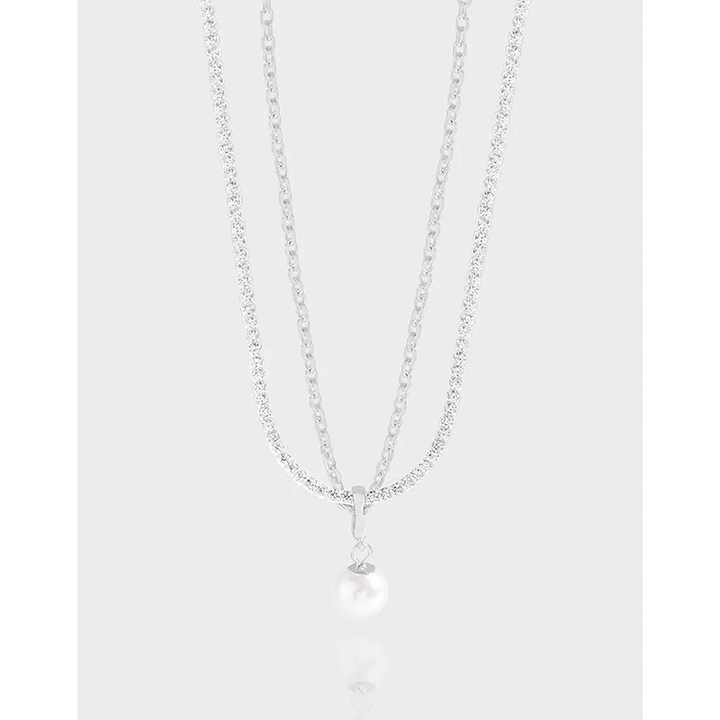 - Patterns & Textures: Crafted with a combination of textures, including two delicate pavé-set chains that capture light with every movement, reminiscent of a shimmering night sky. These are beautifully contrasted by a subtle, smooth link chain. A perfectly round, lustrous pearl hangs gracefully, adding a touch of smooth, natural elegance.
