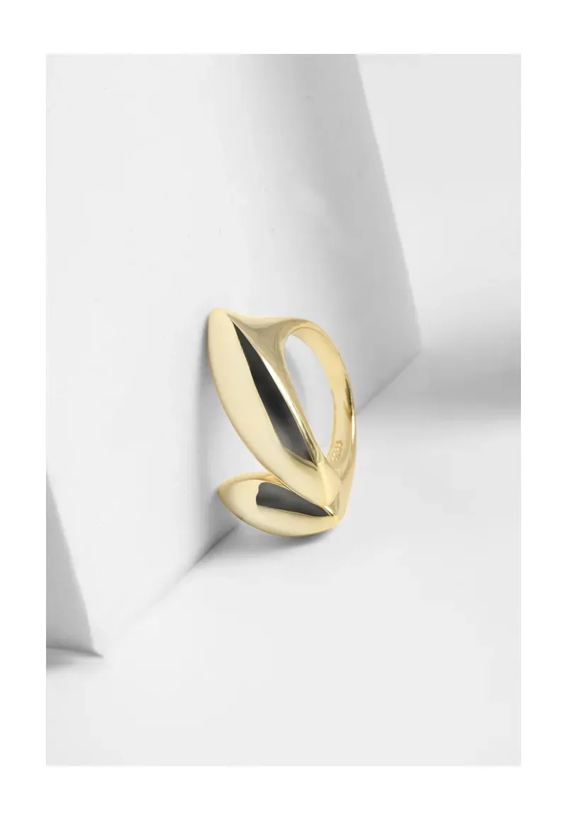 This captivating ring gleams with the radiant warmth of polished gold, casting a luxurious glow.