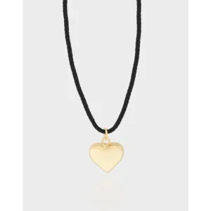 The heart is elegantly suspended from a contrasting black braided cord, offering a touch of raw, organic texture. This design, blending the cord’s subtle woven pattern with the heart’s radiant glow, captures the essence of earth, sky, and light, reflecting Malisse’s inspiration from the northern lights and the timeless allure of nature’s artistry.