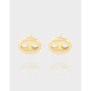 These exquisite stud earrings showcase a distinctive abstract design, crafted from lustrous gold. Their minimalist yet captivating form makes them a versatile accessory.