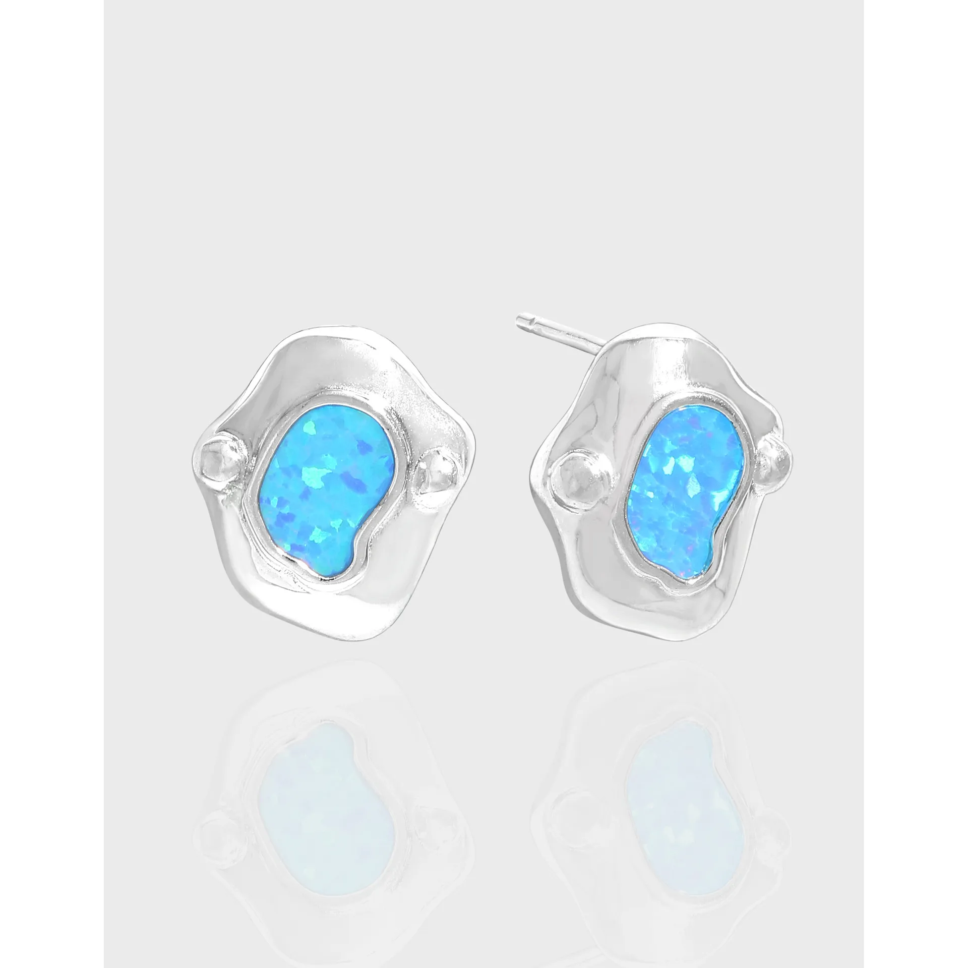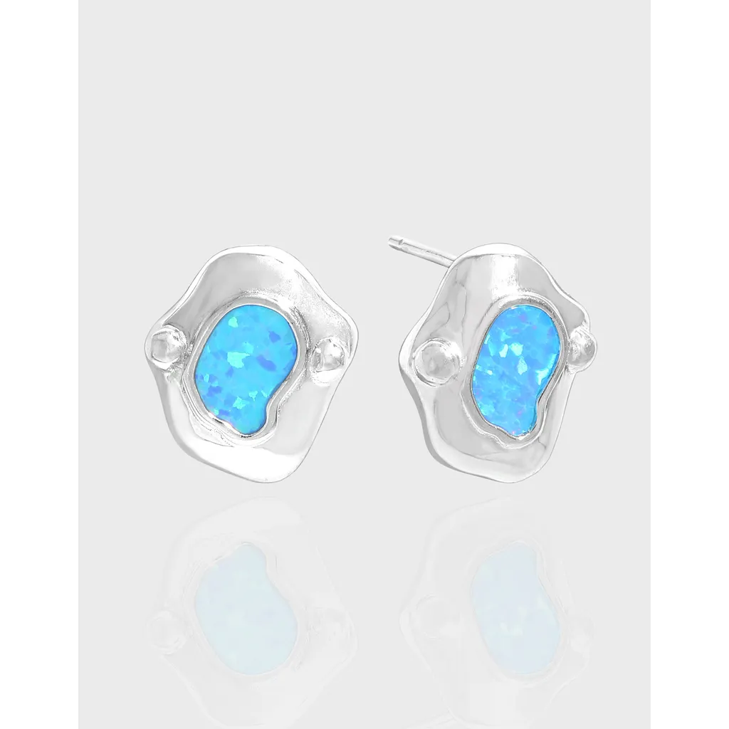 - Color: At the heart of each earring lies a captivating blue opal, shimmering with celestial hues that recall the magical dance of the northern lights. This vibrant gemstone is cradled within a lustrous, polished sterling silver setting, enhancing its radiant beauty.