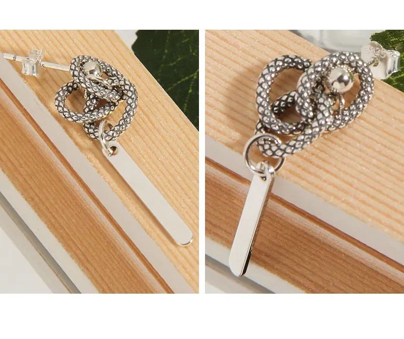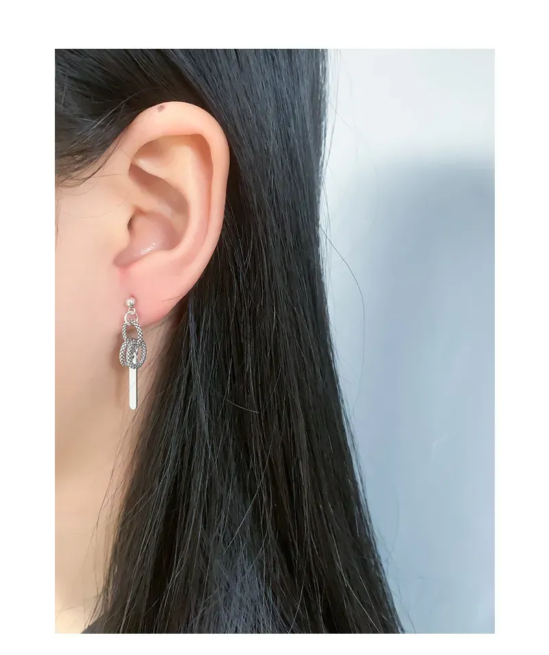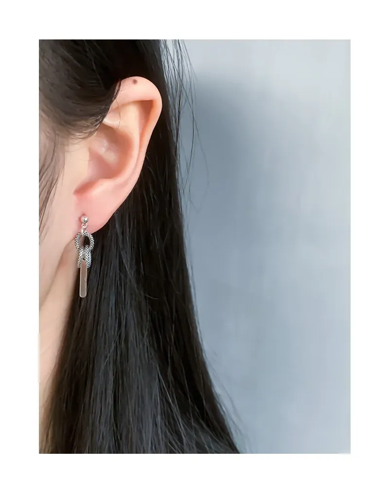 Malisse Textured Chain & Bar Silver Dangle Earring