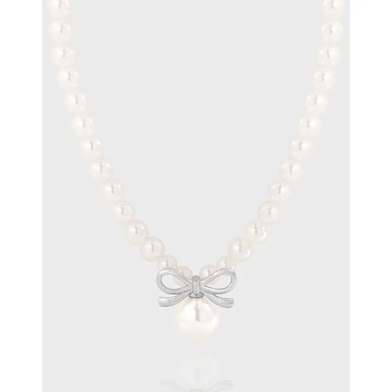 - Style: A classic yet charming design, this piece offers a delicate and feminine aesthetic. The elegant string of pearls gently curves, leading to a beautifully sculpted bow pendant, merging traditional allure with a touch of modern whimsy.