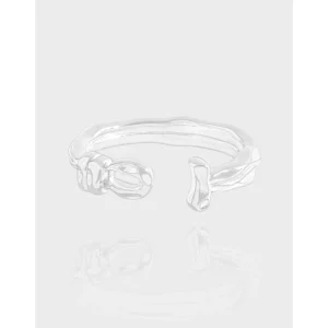 - Textures: The band and its unique ends boast an irregular, raw texture with gentle undulations. This artistic finish mimics the imperfect beauty found in nature’s patterns, adding depth and an artisanal charm to the piece.