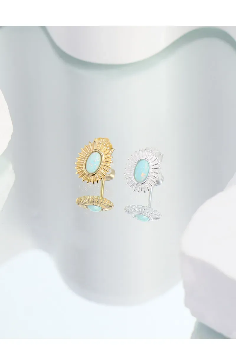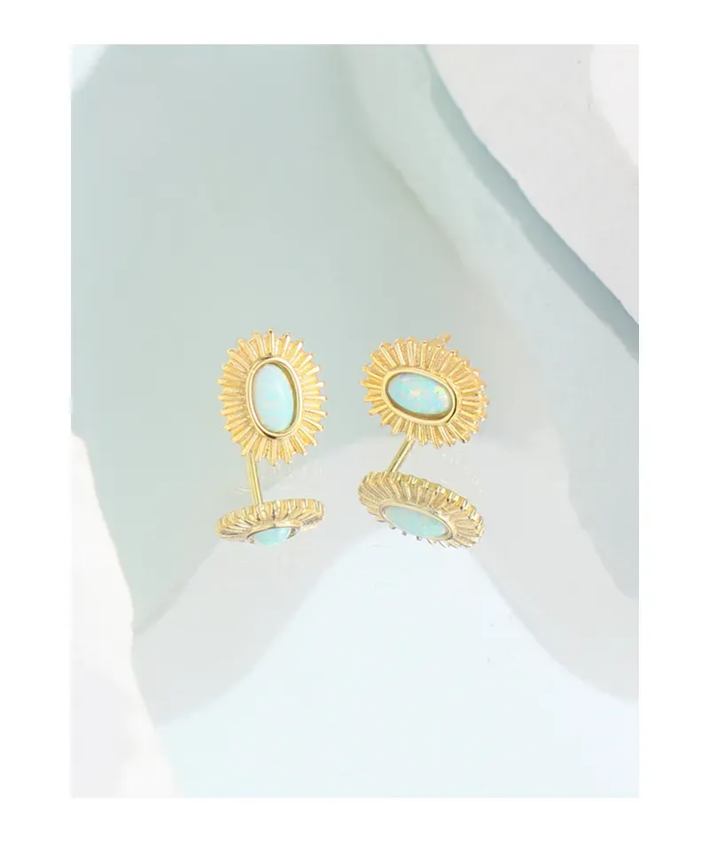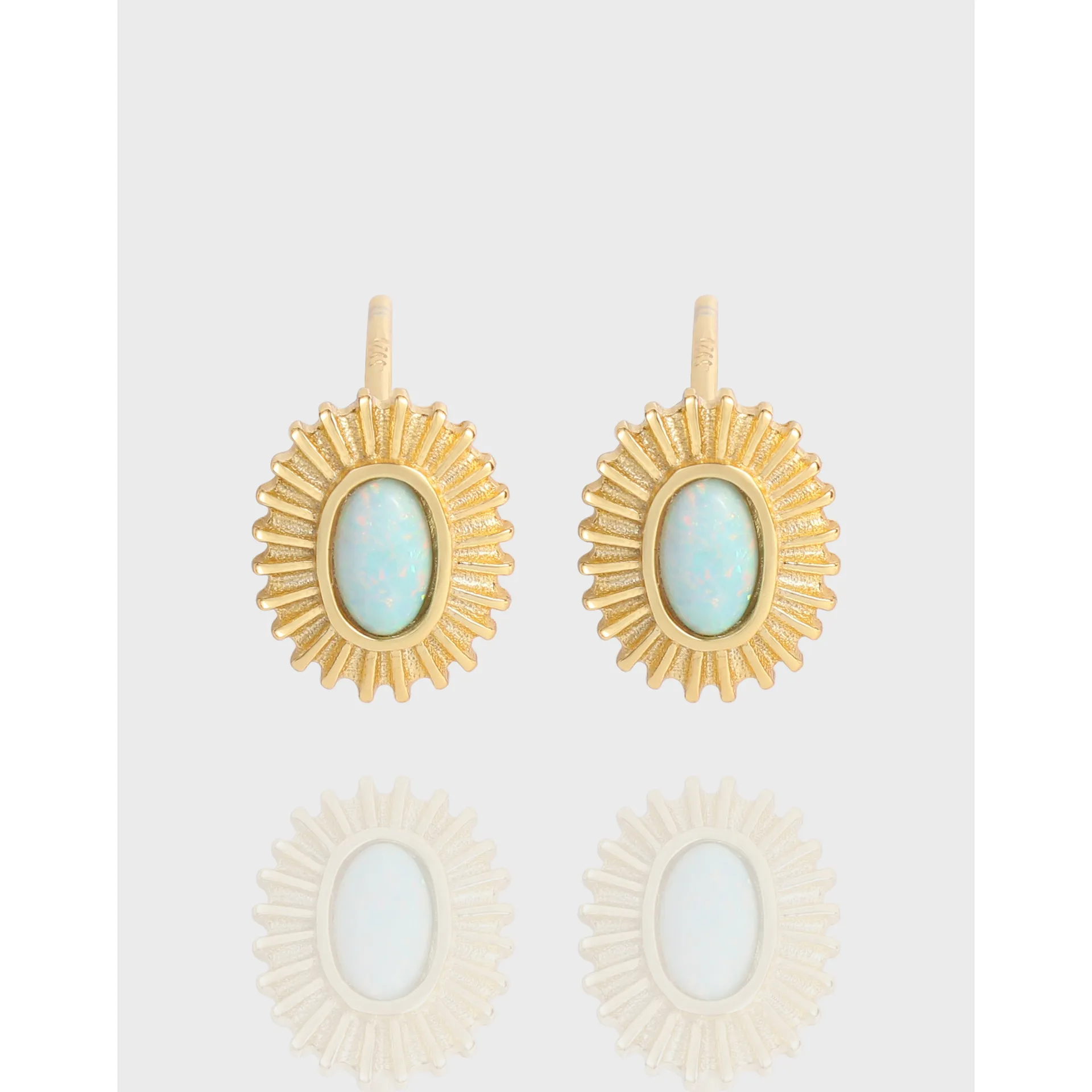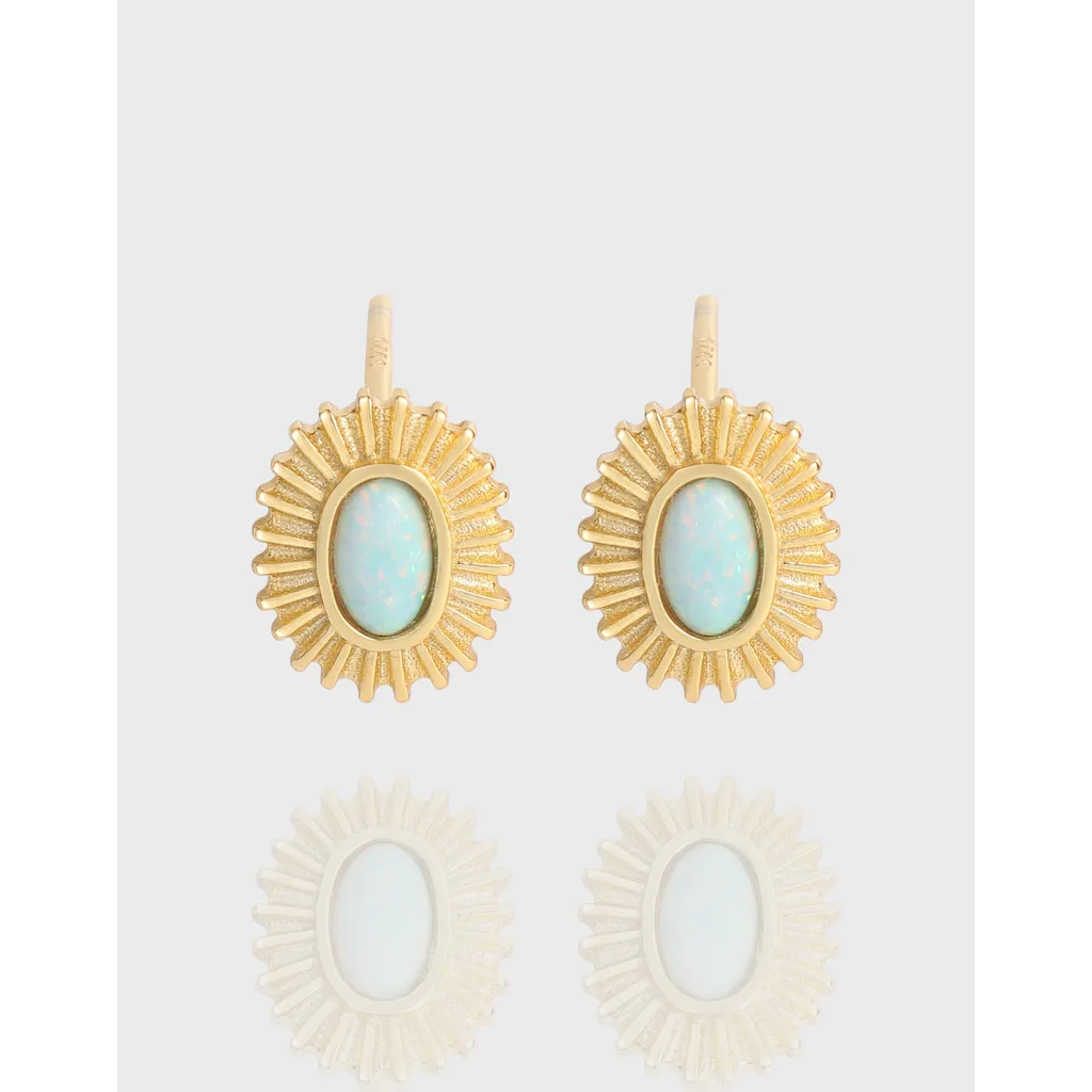 • Style: Elegant drop earrings with a central gemstone, featuring a radiant sunburst design for a celestial and natural aesthetic.