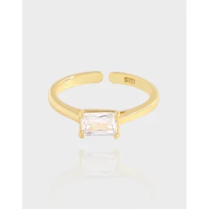 - Color: This piece shines with a brilliant gold-plated finish, harmoniously paired with a clear, sparkling baguette-cut stone. The clarity and luster evoke the pristine beauty of light, reminiscent of celestial hues.