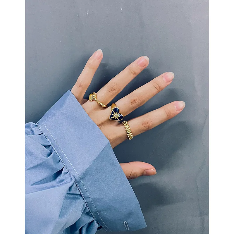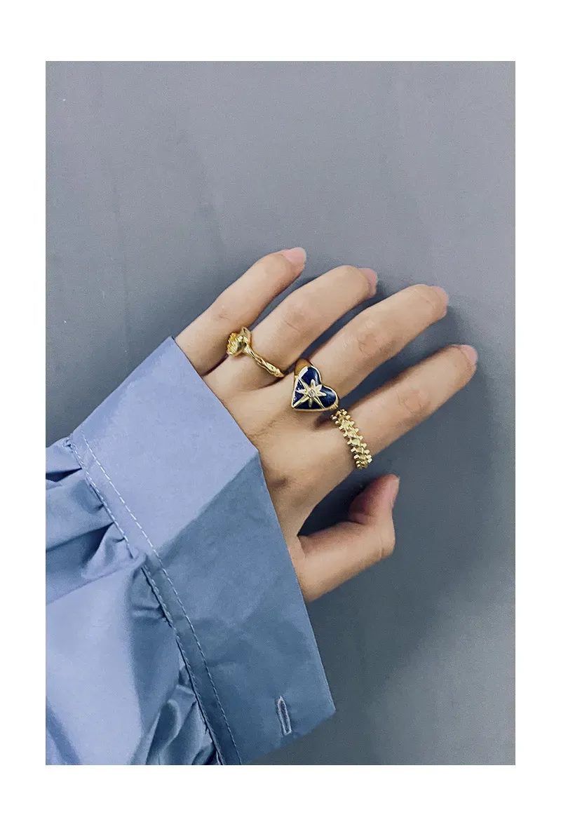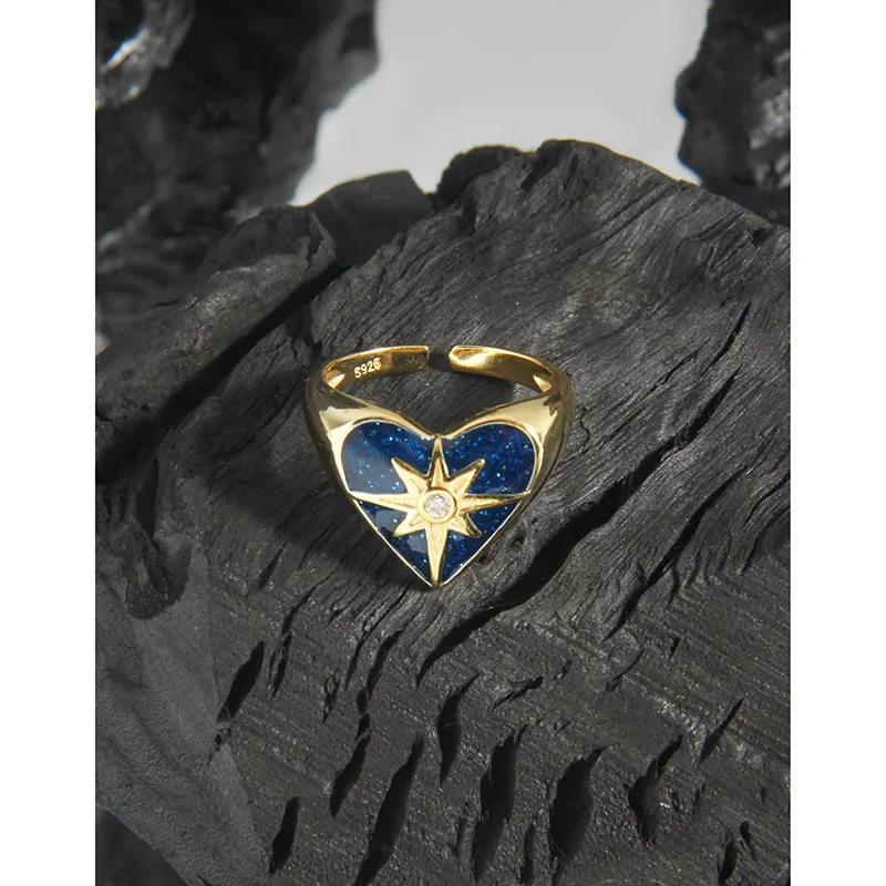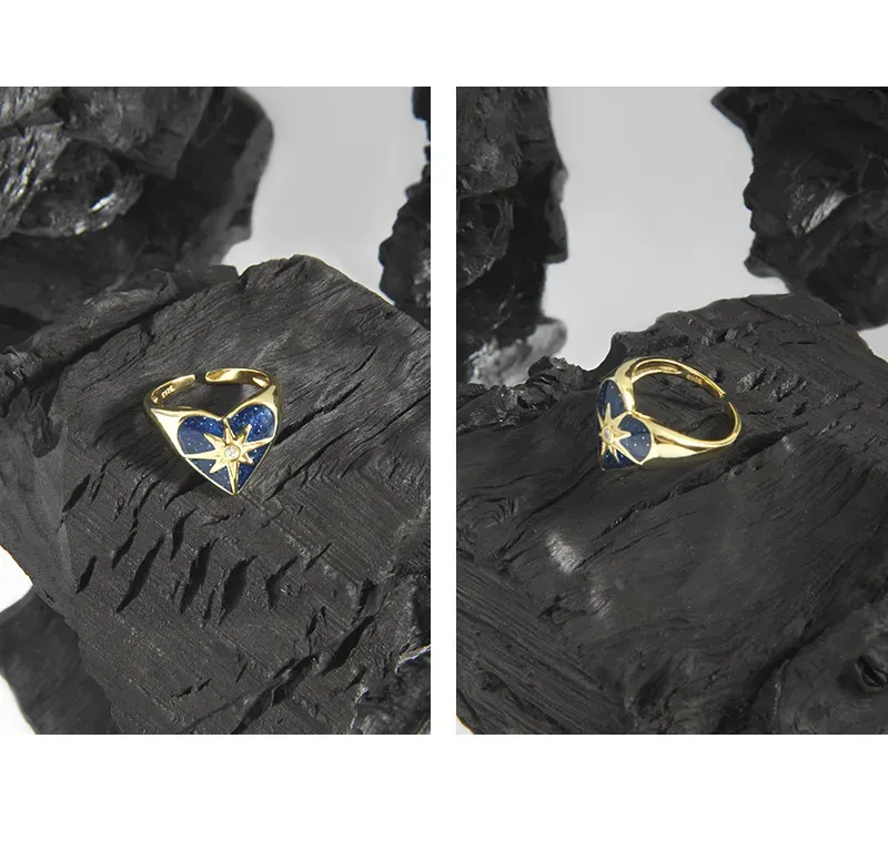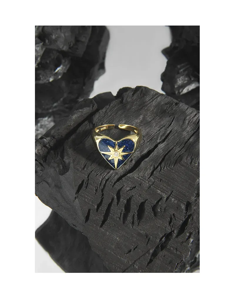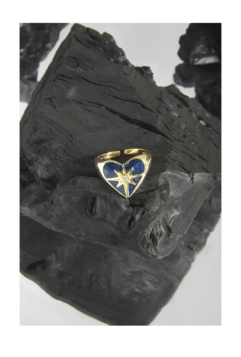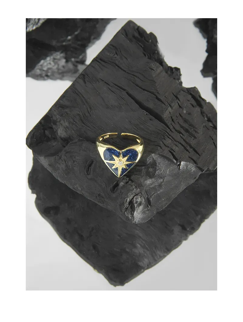- Color & Material: Crafted from lustrous gold-plated sterling silver (S925), the ring showcases a deep celestial blue heart, reminiscent of a midnight sky. At its center, a brilliant clear cubic zirconia gemstone adds a captivating sparkle.