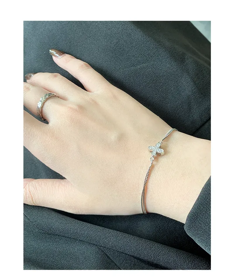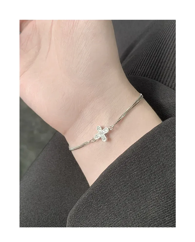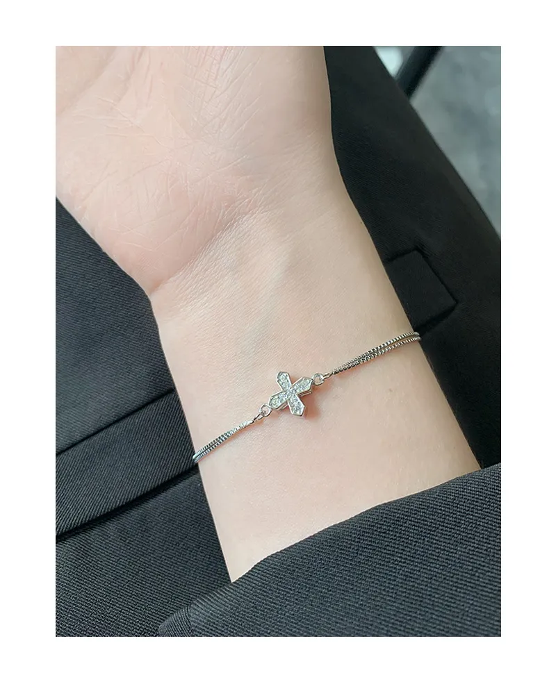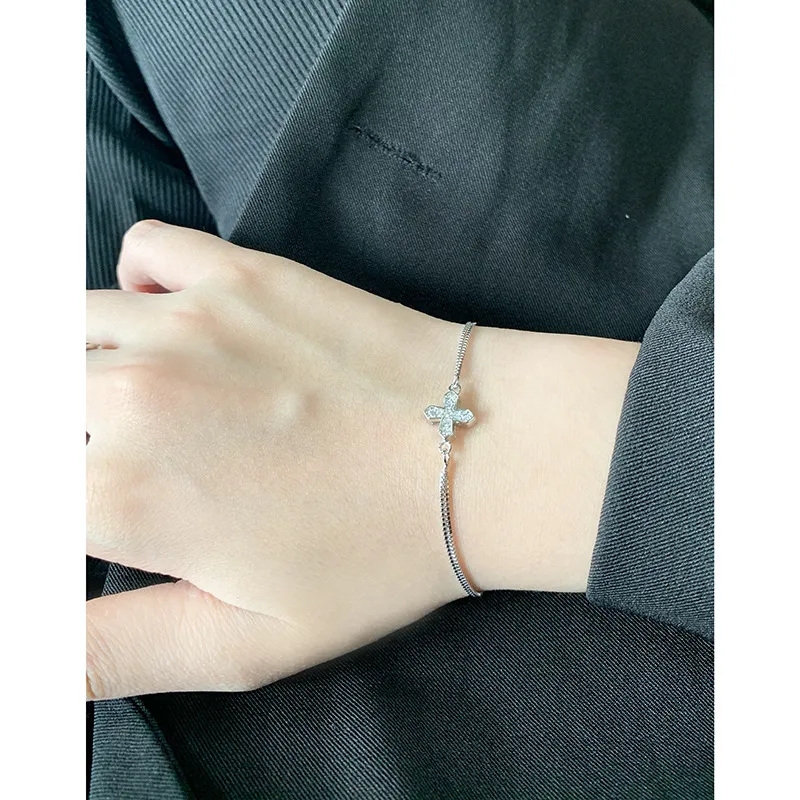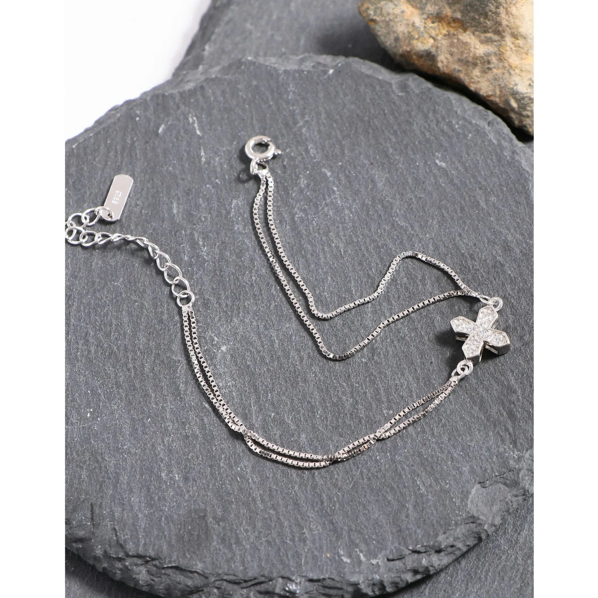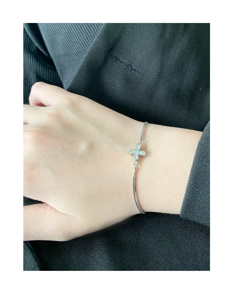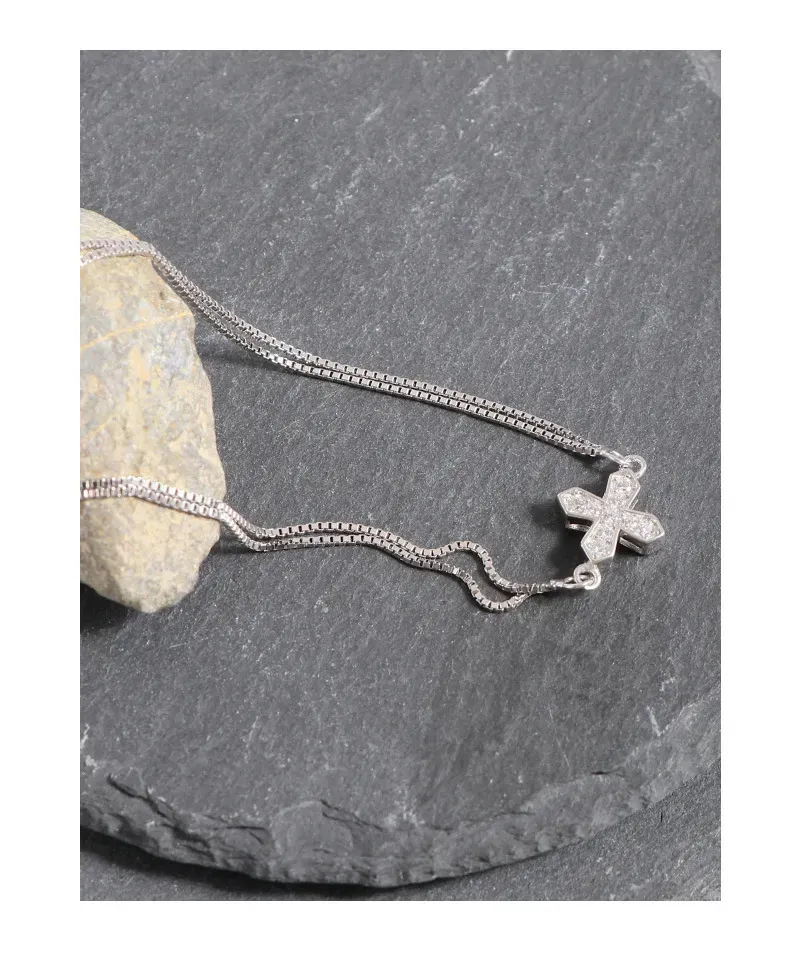 Celestial Silver Cross Bracelet, Dazzling Sparkle