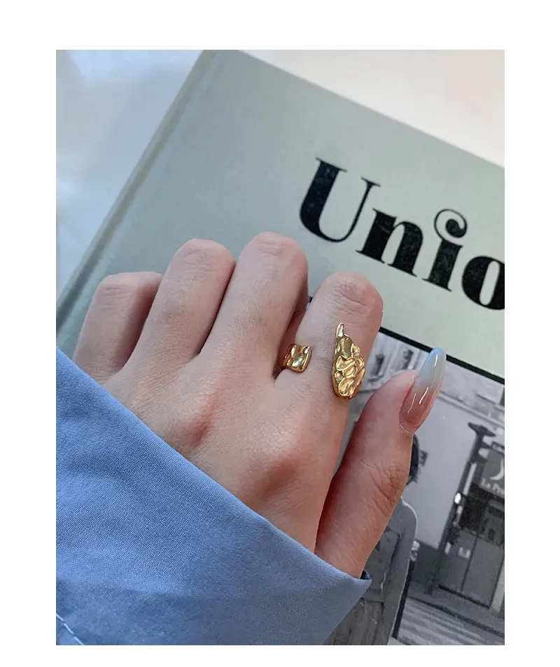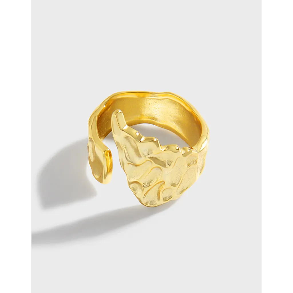 Inspired by the fluid and organic beauty of the natural world, the Malisse Golden Crinkled Wave Adjustable Ring is a celebration of raw textures and captivating forms. Each detail captures the essence of earth, sky, and light, reflecting the “imperfect beauty of nature’s patterns.”