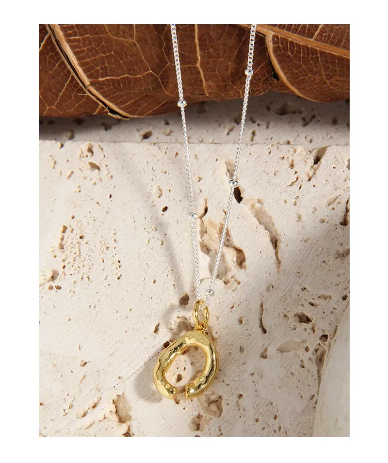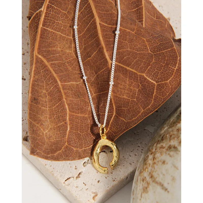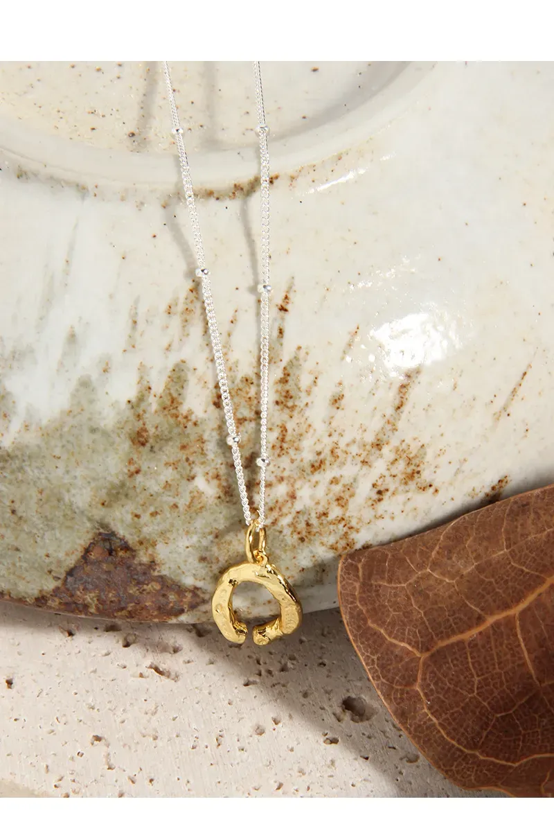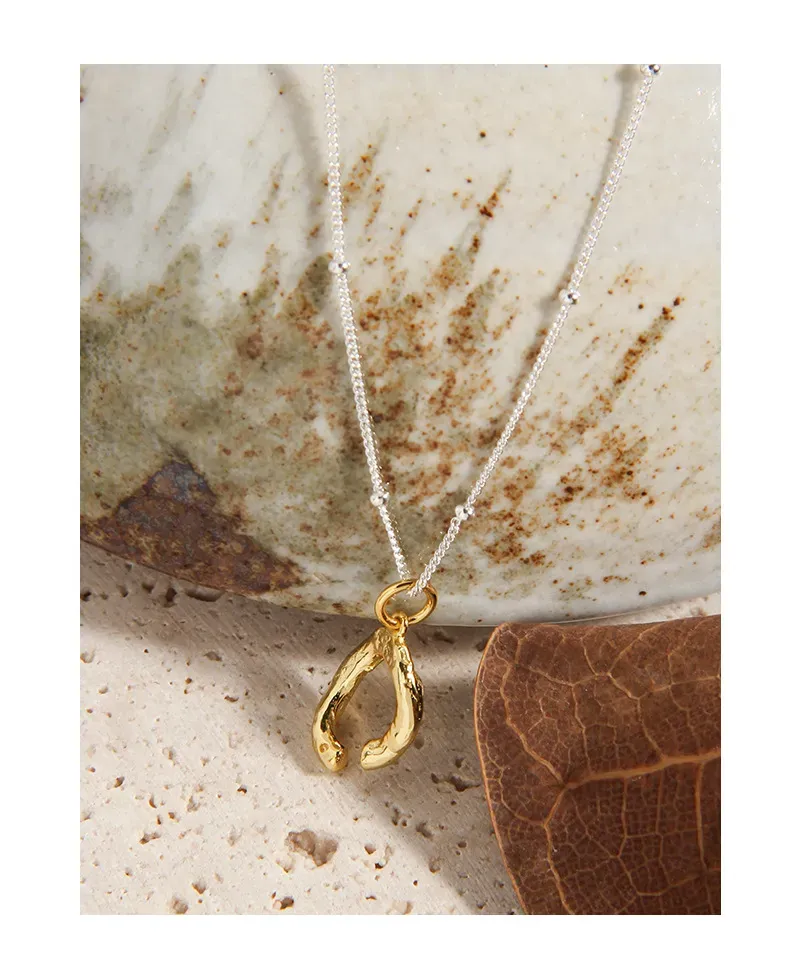 Embrace the enchanting allure of nature with this exquisite Malisse necklace, featuring a captivating pendant crafted in a rich, warm gold tone. Inspired by the fluid shapes and raw textures of the natural world, the pendant boasts an imperfectly beautiful, textured surface, reminiscent of molten gold shaped by the elements. Its unique, organic silhouette with a gentle opening captures a sense of dynamic flow and timeless artistry.