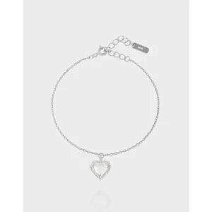 - Color: Crafted from lustrous S925 sterling silver, the bracelet features a captivating heart-shaped gemstone. Its translucent core radiates with a milky, iridescent white hue, reminiscent of moonlight or distant nebulae.