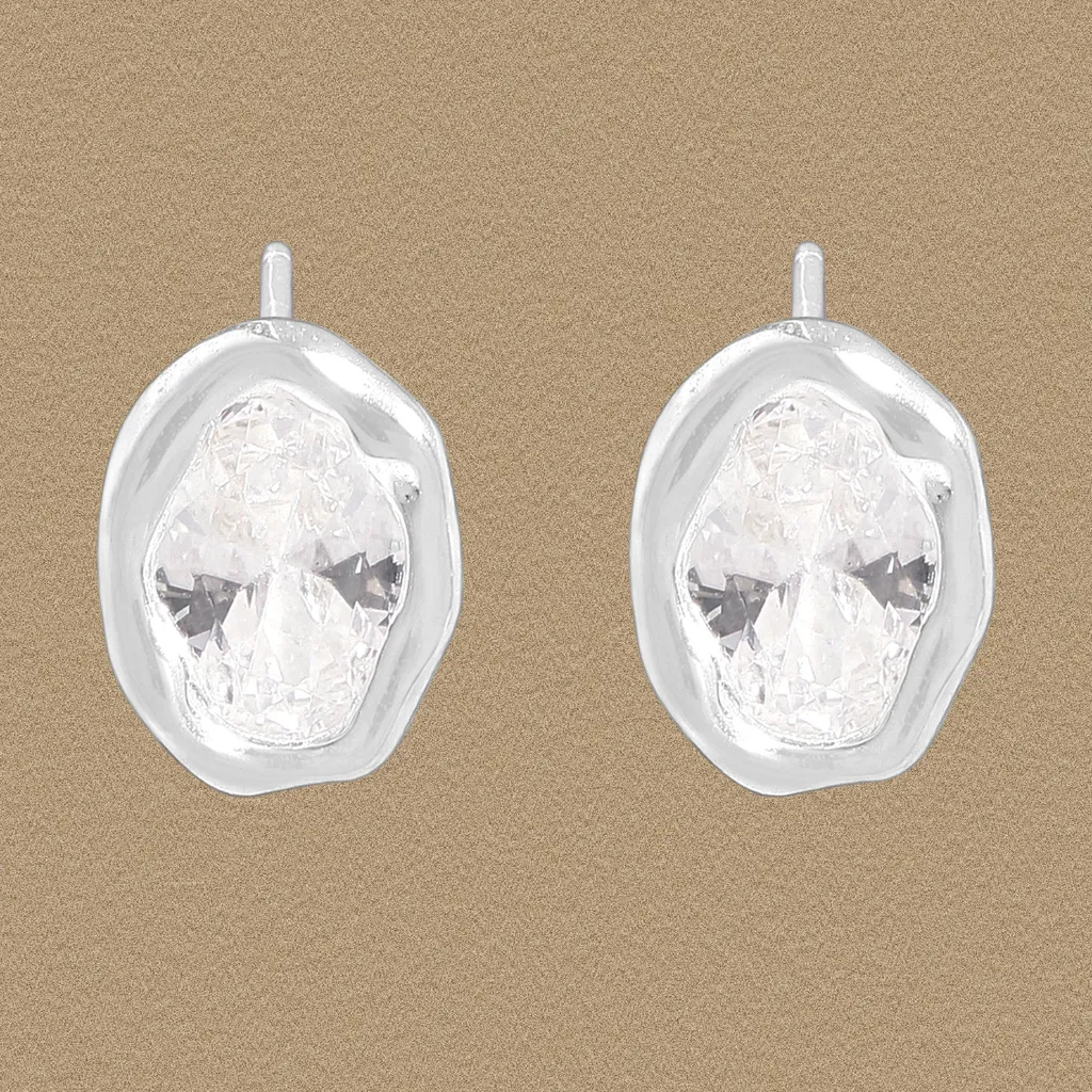 - Patterns & Textures: The smooth, polished silver-tone metal boasts an artfully irregular, melted-like texture around the edges, creating a distinctive, organic frame. The clear gemstone within is precisely faceted, catching and reflecting light with a dazzling brilliance that adds depth and shimmer.