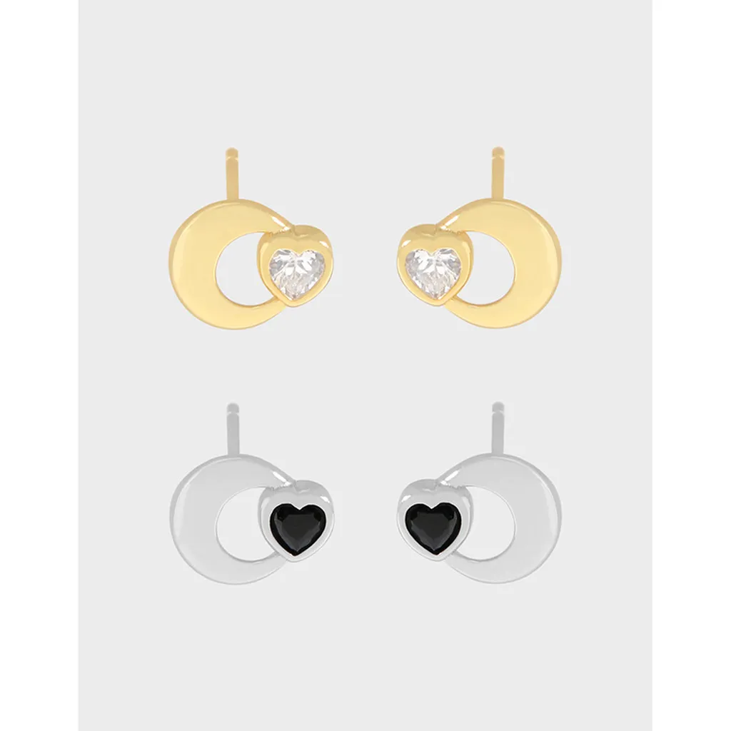 - These stud earrings showcase a minimalist yet profound design, with a graceful crescent shape that tenderly cradles a heart. This symbolic embrace evokes cosmic connection and timeless affection.