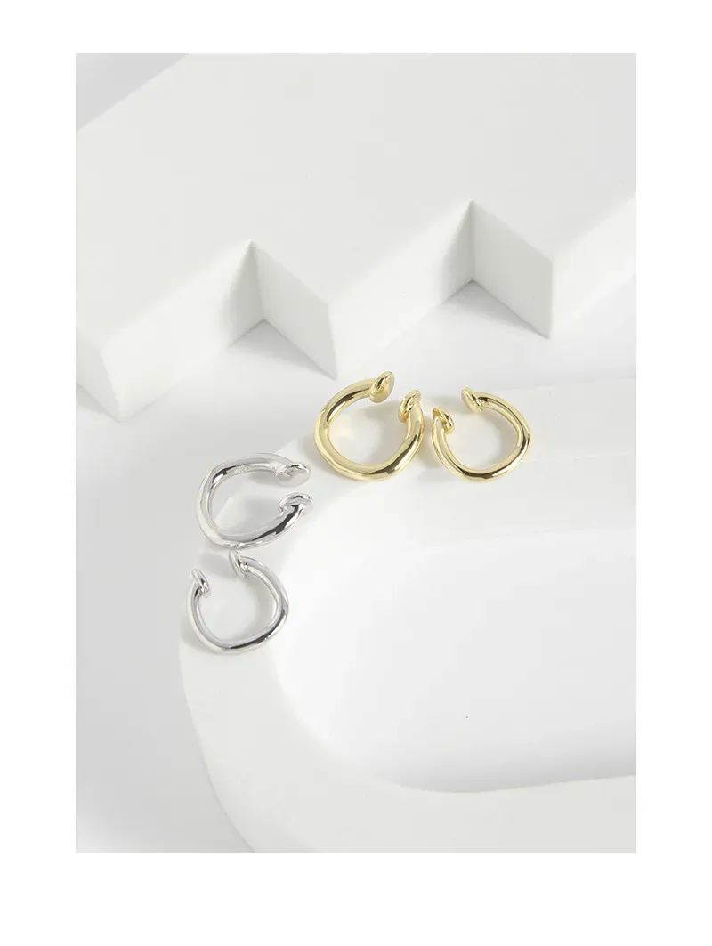 - Style: Designed with an innovative C-hoop silhouette, these ear cuffs embody a contemporary and organic aesthetic. Their distinctive, flowing shape captures the essence of fluid forms, making them as dynamic and graceful as nature’s dance.