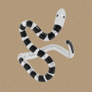 • Patterns & Textures: The body is adorned with distinct alternating bands of black and white, creating a captivating striped pattern. The surface is polished to a sleek, smooth texture, showcasing the meticulous detail and “imperfect beauty of nature’s patterns” reinterpreted with sophistication.