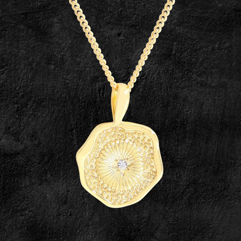 Embrace the magic of the cosmos with this exquisite Malisse Celestial Bloom Pendant Necklace. Crafted from lustrous, warm gold, this piece captures the essence of a natural wonder, reminiscent of a delicate flower unfurling or a distant star radiating light.