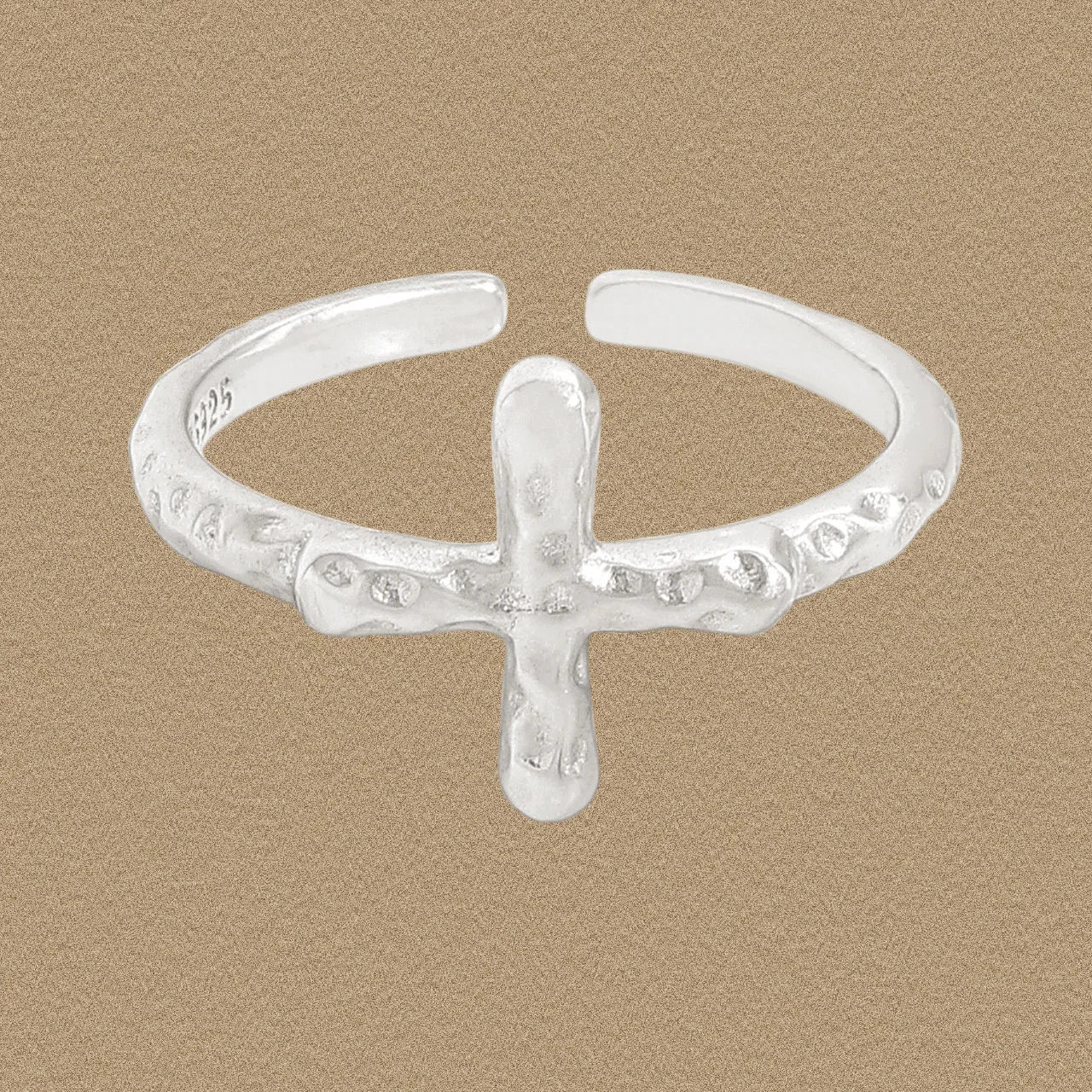 - Style: An open-band, adjustable Aurora Ring featuring a distinct, organically shaped cross motif. Its fluid design merges a minimalist aesthetic with profound symbolism.