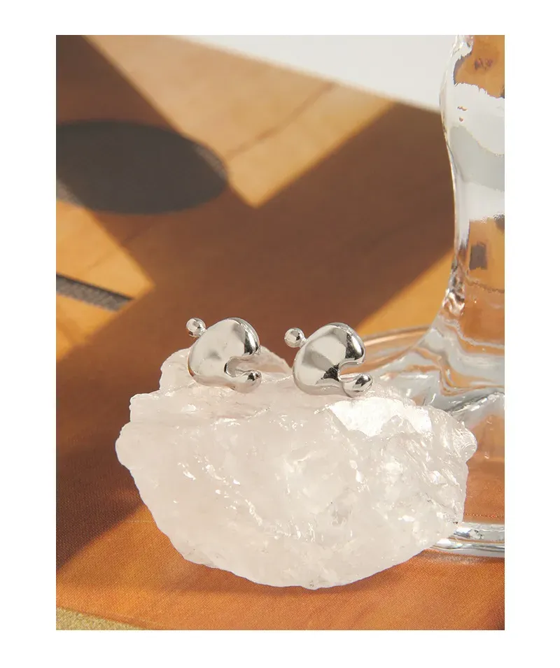 These exquisite stud earrings, crafted in gleaming silver, embody the fluid and organic artistry central to Malisse’s philosophy. Each earring features a unique, sculpted form with a beautifully polished, reflective surface, reminiscent of nature’s delicate imperfections and smoothed elements. Their abstract, undulating design captures the essence of raw textures and natural movement, reflecting the brand’s deep inspiration from the celestial dance of the aurora borealis.