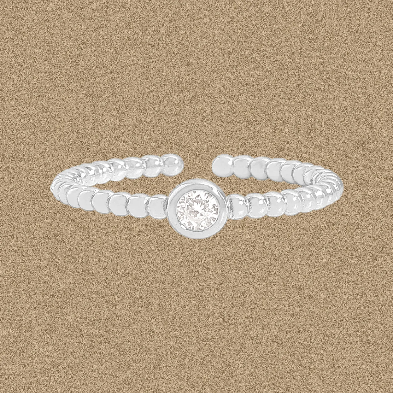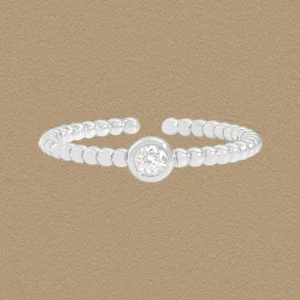 • The slender band features a captivating pattern of uniformly sized, polished spherical beads, creating a tactile and visually rich texture. This delicate detail evokes the imperfect beauty found in nature’s elements, such as a string of dewdrops.