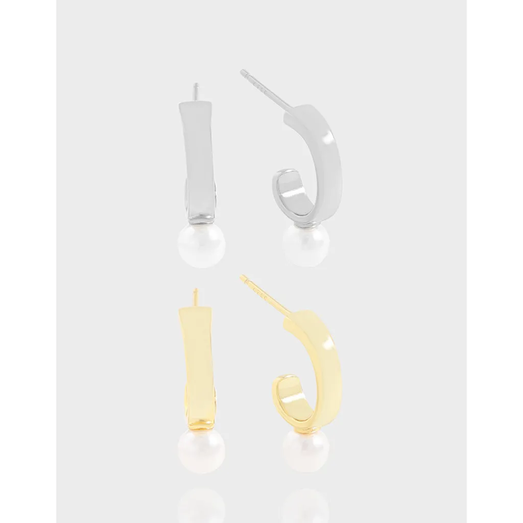 - **Style:** Modern open hoop design with a minimalist C-shape, enhanced by a single, lustrous pearl drop for a touch of classic sophistication.