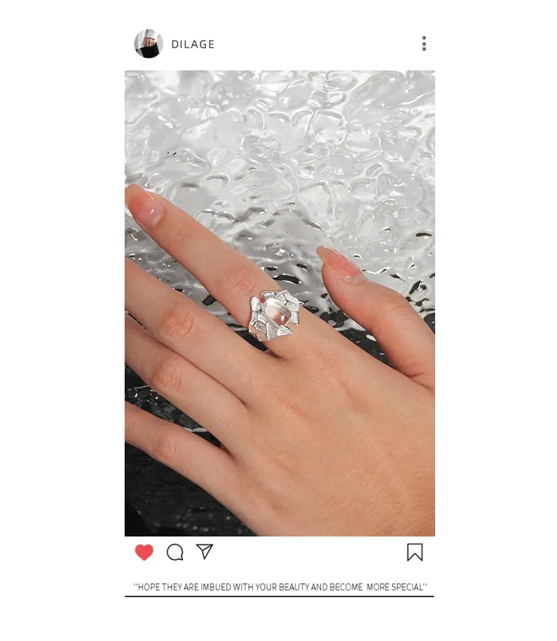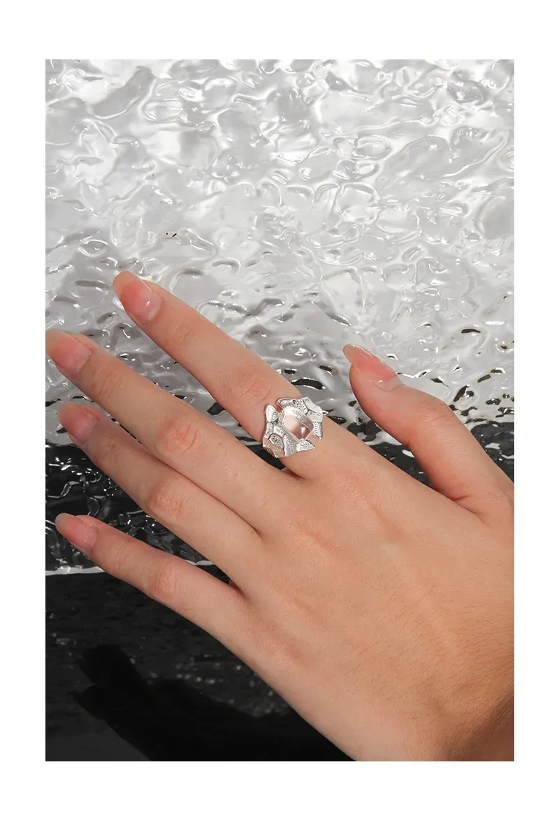- Color: The Belisandre Ring showcases a rich antiqued silver tone, providing a bold contrast to the central, luminous milky-white or translucent stone.