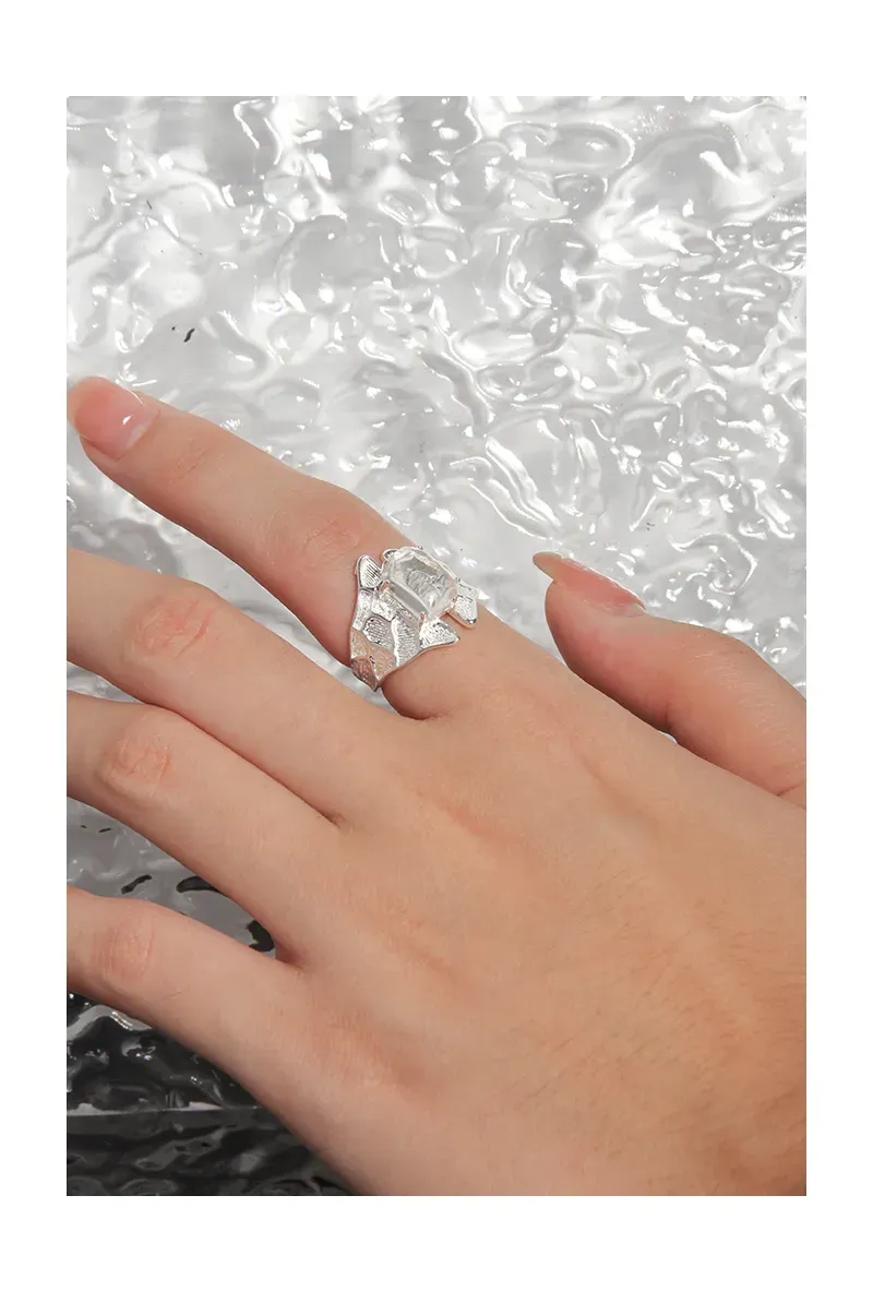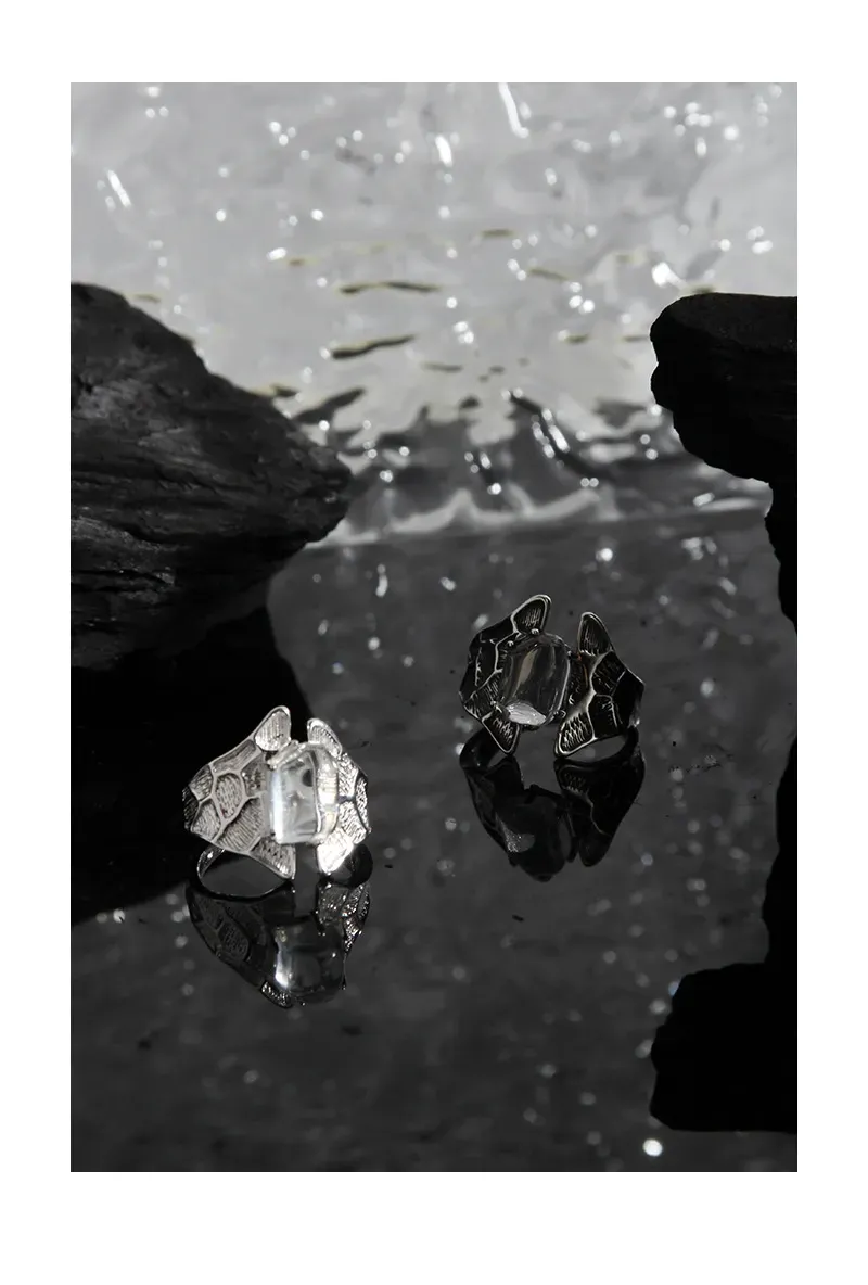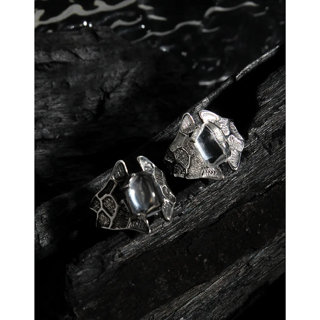 Discover a ring that captures the raw beauty and mystery of the natural world. This striking piece features an antiqued silver-tone finish, evoking the depth and character of aged elements found in nature.