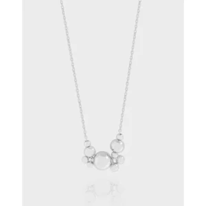 - Style: A testament to organic elegance, this pendant necklace showcases a playful yet sophisticated cluster of interconnected spheres. Its fluid arrangement and varying sizes evoke images of dew drops, bubbles, or distant cosmic bodies, reminiscent of nature’s imperfect beauty.