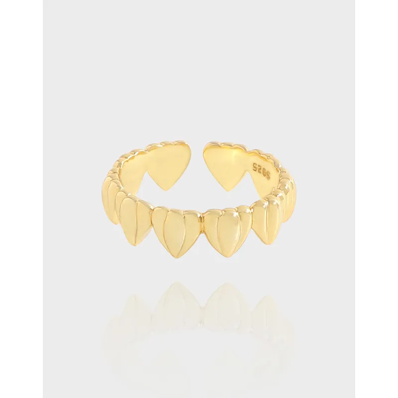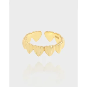 - Patterns & Textures: The band features a continuous series of beautifully crafted heart shapes, each subtly puffed and rounded to create a soft, three-dimensional texture. The surface is meticulously polished, reflecting light with a smooth, brilliant gleam, reminiscent of the sun’s golden touch on earth’s artful forms.