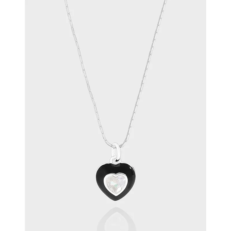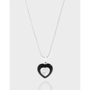 - Color: A sleek, polished silver chain gracefully holds a captivating heart pendant. The outer heart features a lustrous, deep black enamel, providing a striking contrast to the brilliant, clear crystal heart nestled within. The crystal itself shimmers with an internal luminescence, reminiscent of celestial light.