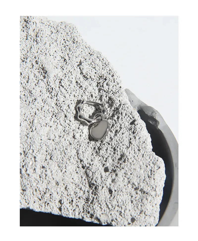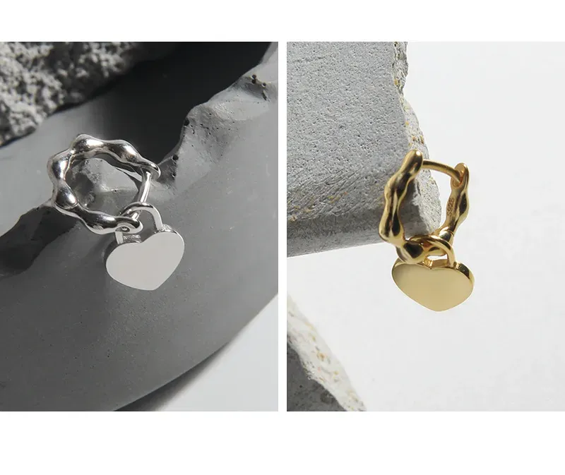 • Patterns or Textures: The hoop showcases a distinctive wavy, fluid texture, reflecting natural fluidity, while the heart charm boasts a completely smooth, highly polished surface, creating an elegant contrast.