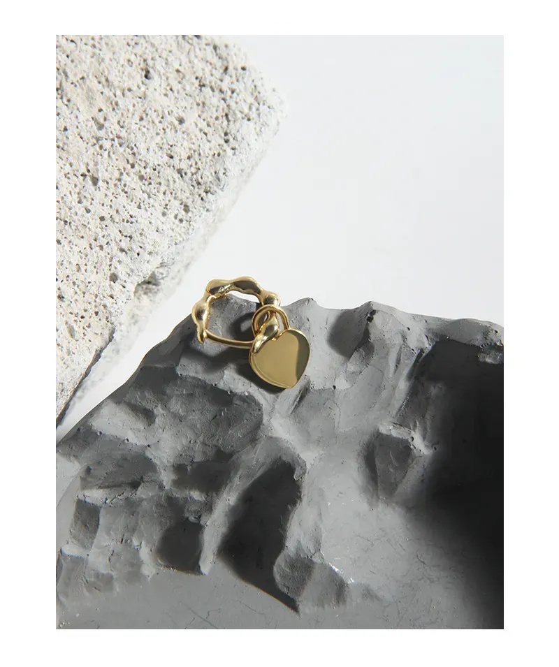 • Style: A modern minimalist dangle earring, combining an organic hoop with a classic heart charm for a touch of romantic sophistication.