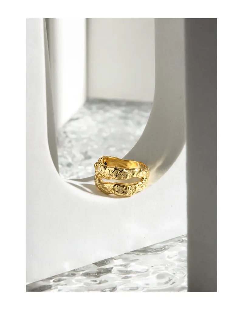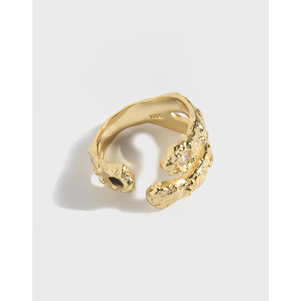 Malisse: Serpent Coil Ring with Raw Gold Texture