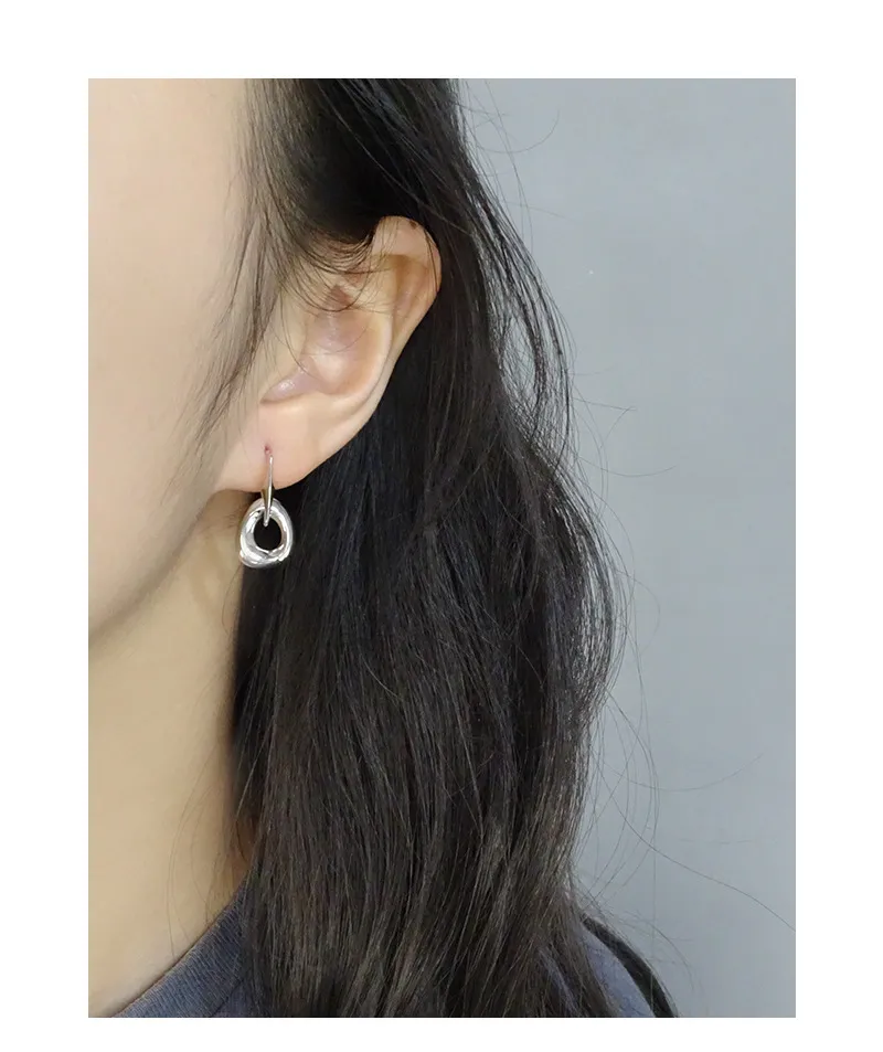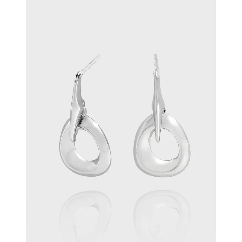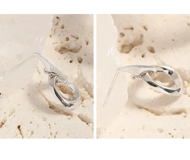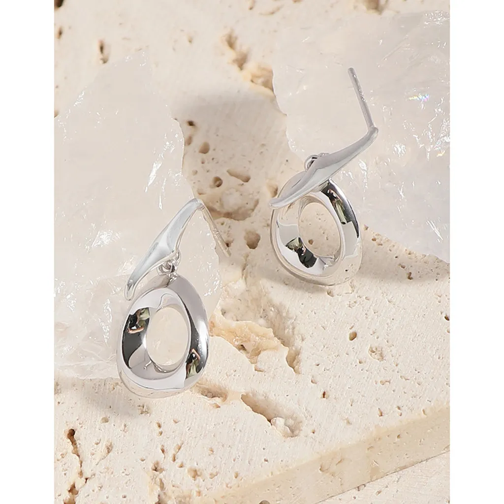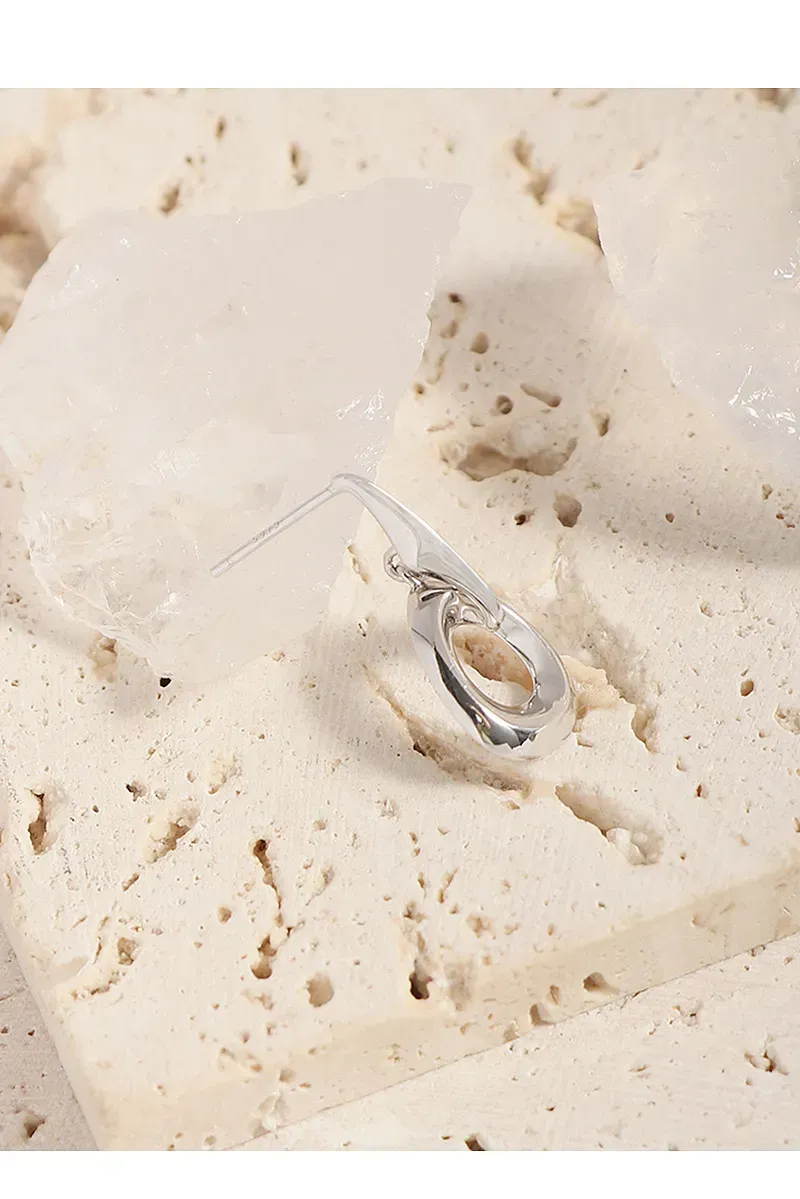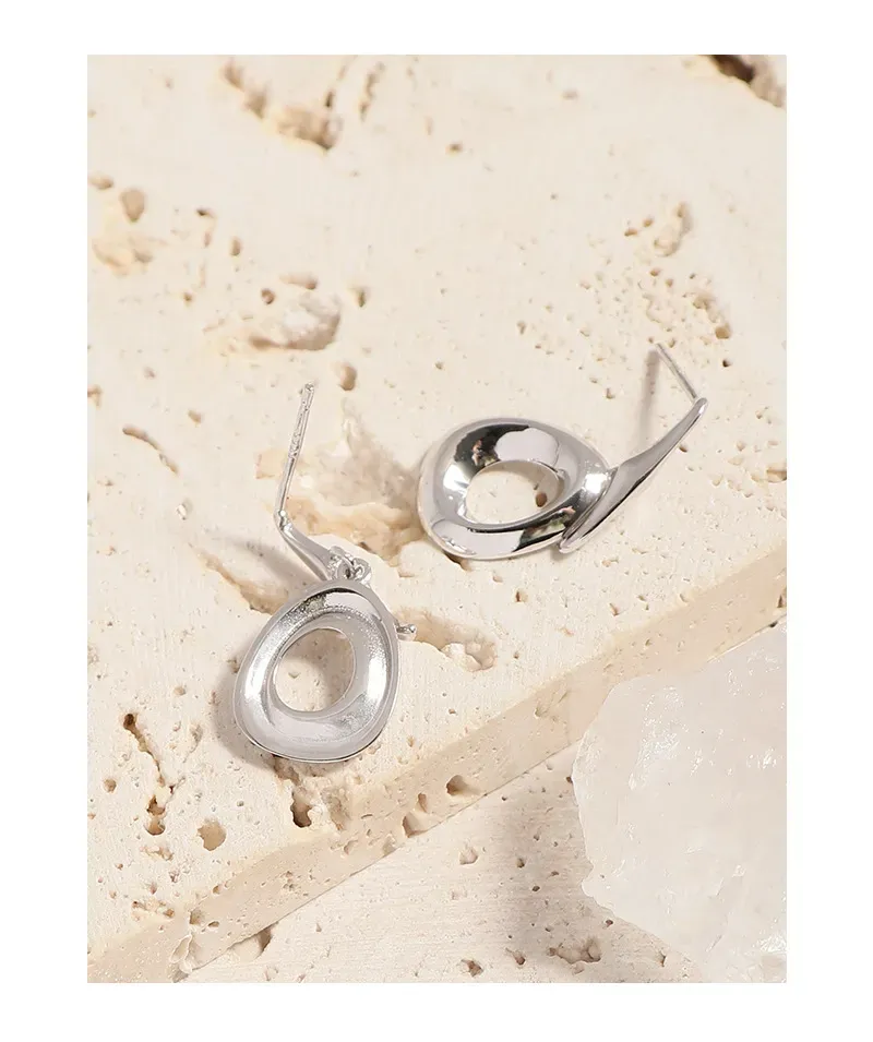 - Style: Featuring a distinctly fluid and organic design, these drop earrings present an abstract, sculptural form. Their subtly irregular, elongated oval shape is reminiscent of a smoothed river stone or a gentle, molten ripple, embodying a modern yet timeless aesthetic. They hang gracefully, adding a touch of understated drama and contemporary elegance.
