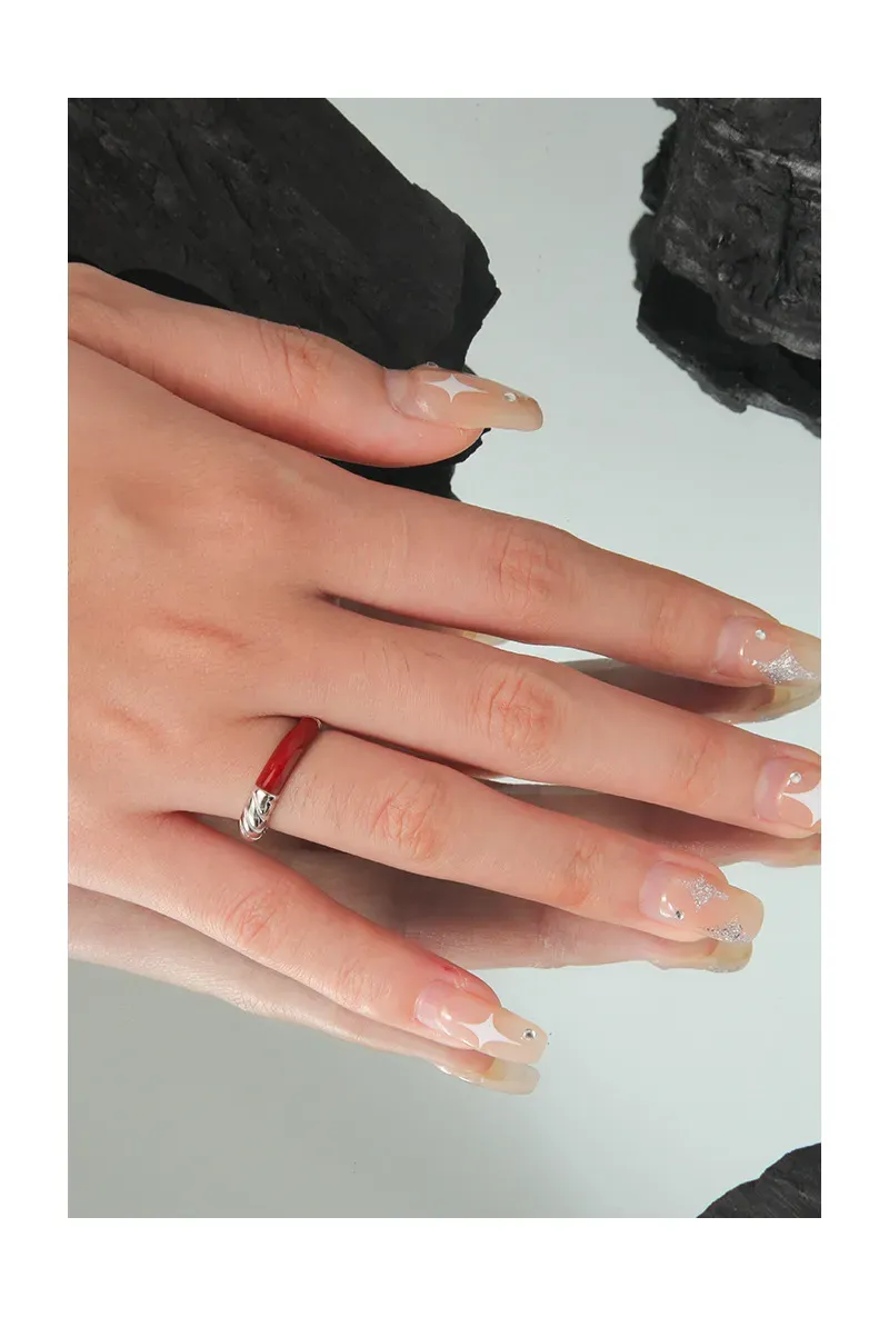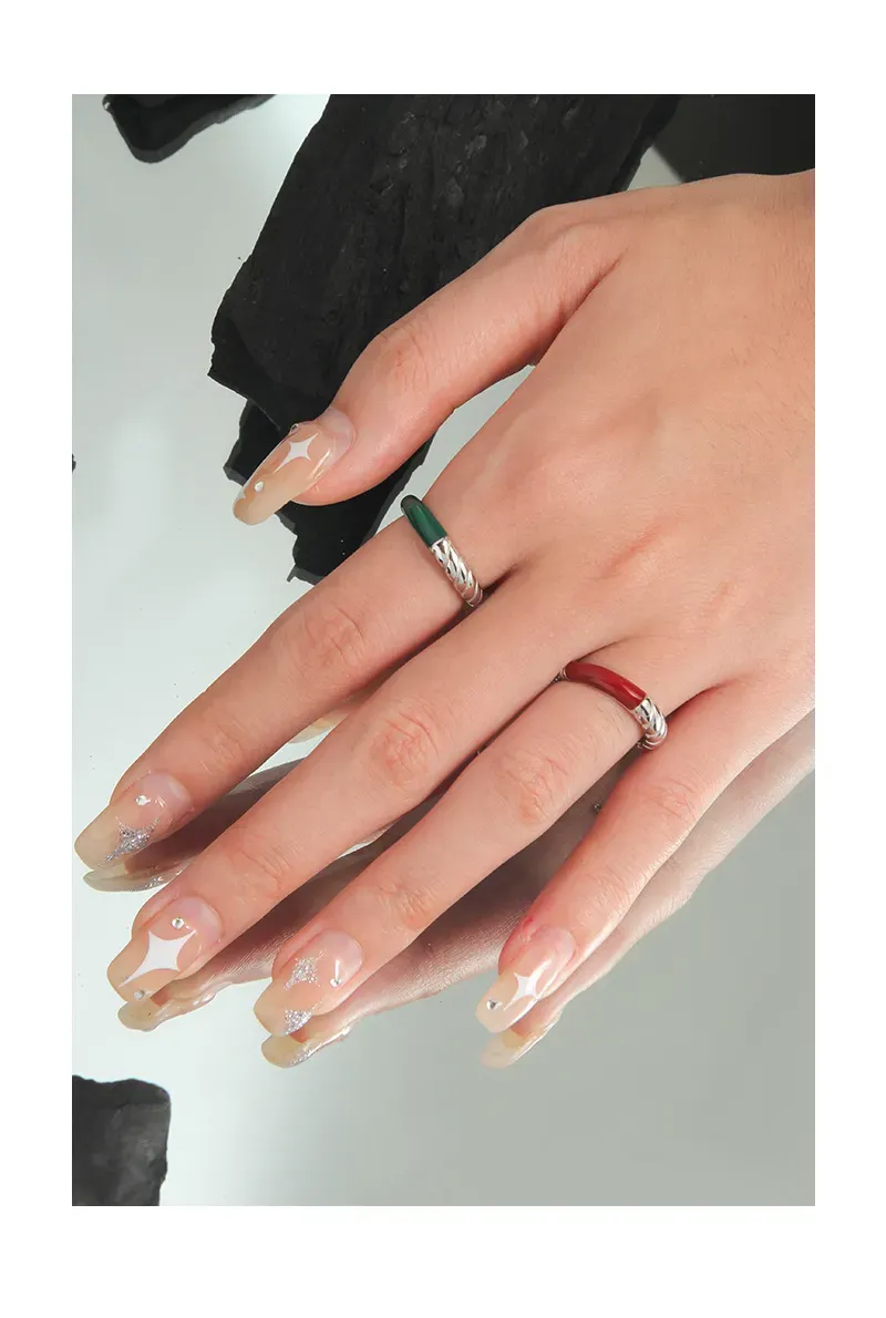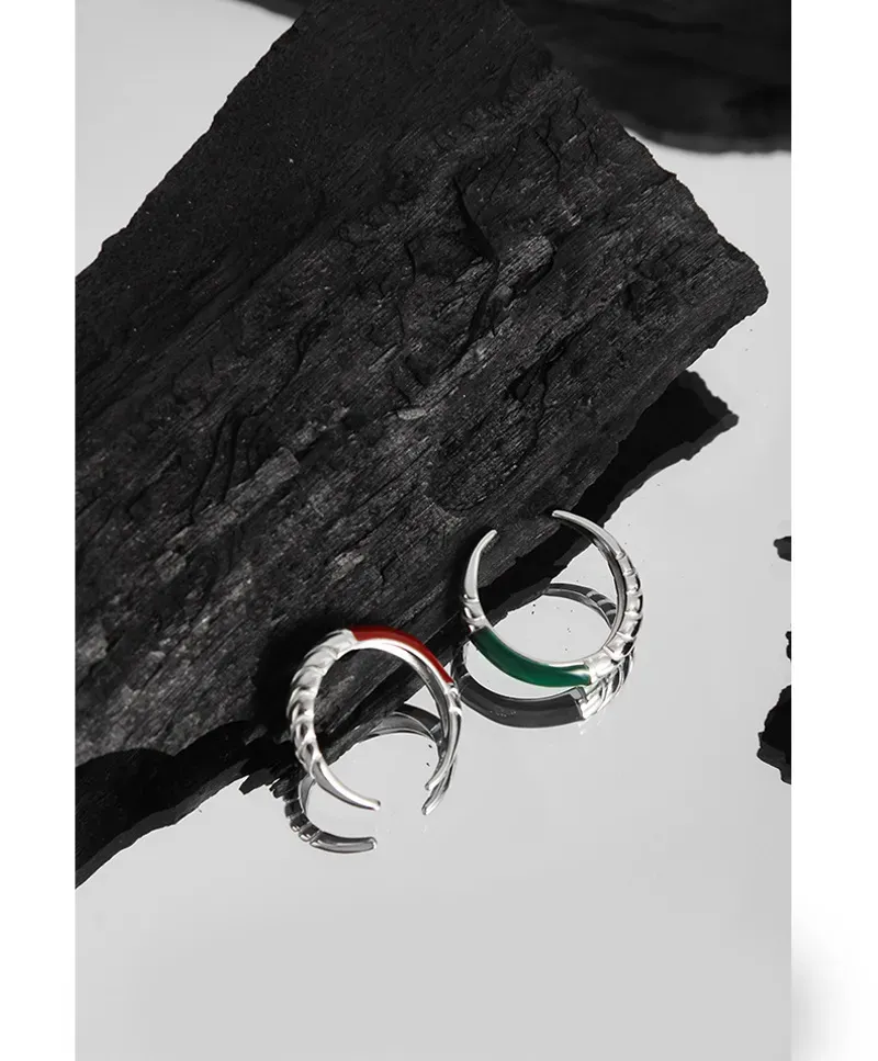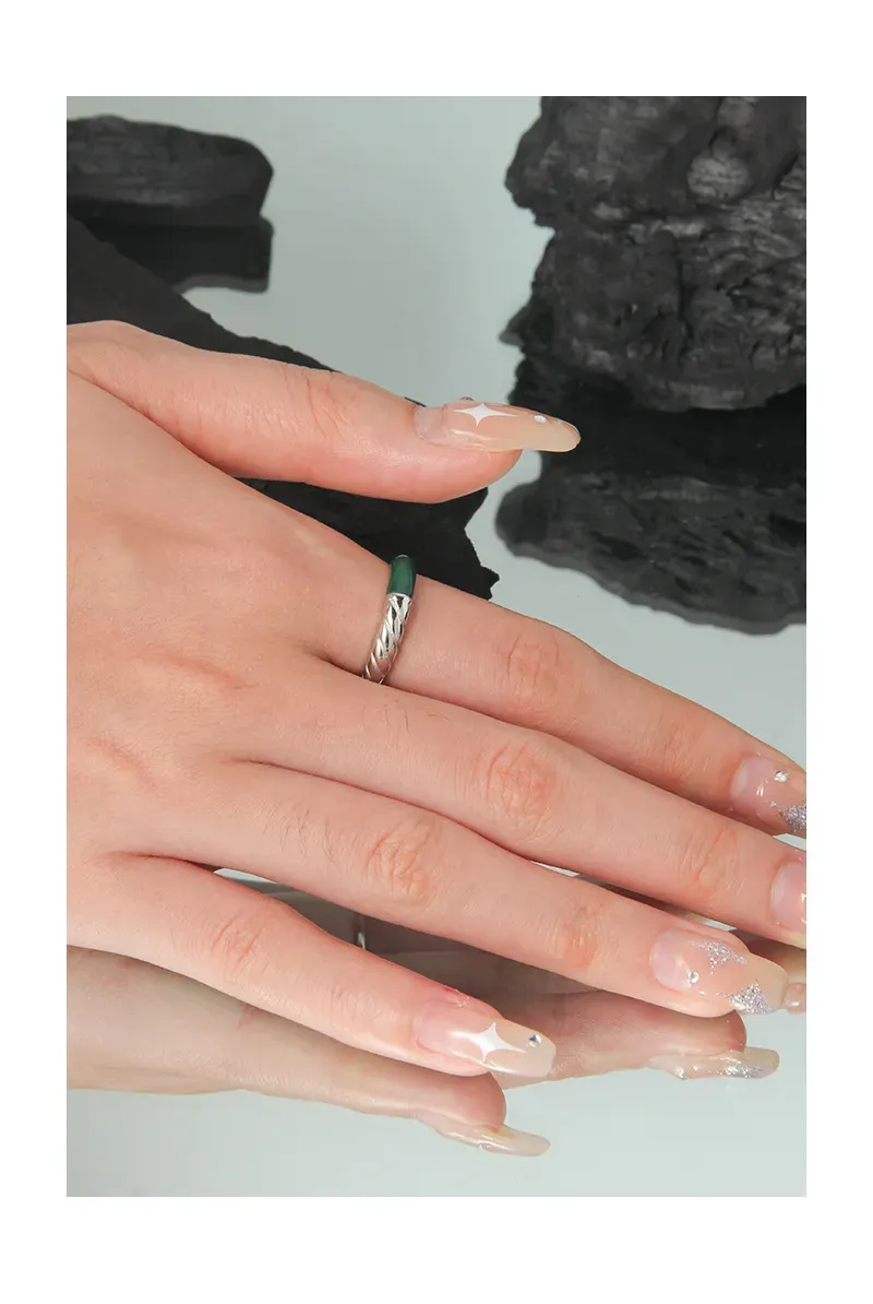 - Color: One half of each adjustable ring features a vibrant, smooth enamel segment: a rich, deep forest green on one, and a captivating, glossy burgundy red on the other. The radiant silver-tone metal beautifully complements these hues, evoking the depth of nature’s elements and a celestial shimmer.